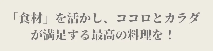 なるべく自然に近いものを取り入れて、食材の味を引き立てた料理を提供いたします。