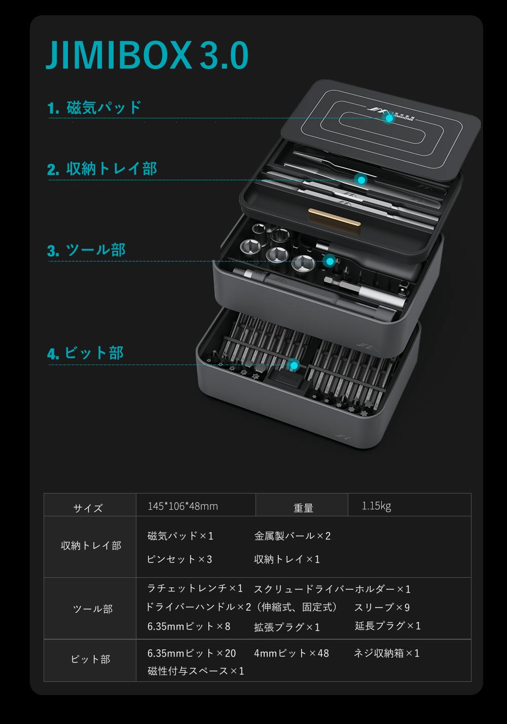 前回実施の"JIMIBOX 2.0"より、日常のDIYシーンでの使いやすさを追求し、"JIMIBOX 3.0"は以下の点が進化しています。