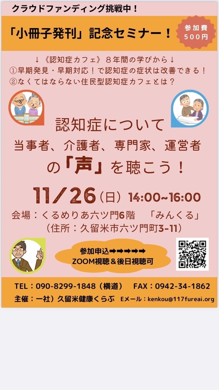 認知症で困っている方や認知症カフェの運営者そして関心のある方は、是非中味を視聴頂ければ幸いです。或いは、久留米健康くらぶで検索してご覧頂ければより感謝です。