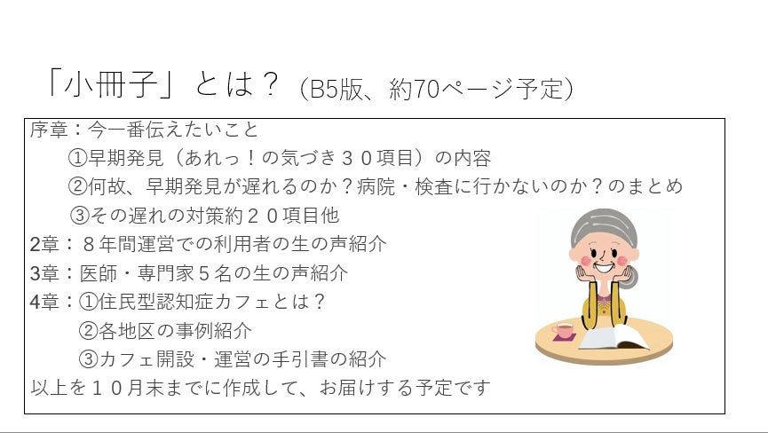 認知症早期発見&対応と住民主体の認知症カフェの小冊子を作成して全国に届けたい!