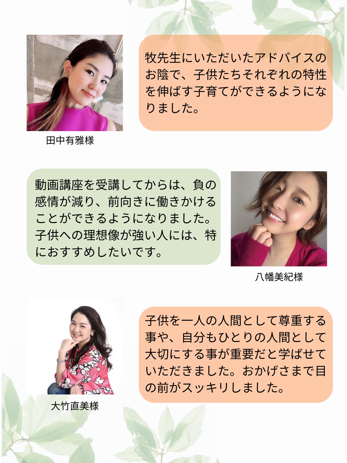 実際に母親コーチングのサービスを始めてみると、受講されたお母さんからたくさんの感謝と変化のご様子の言葉をいただきました。