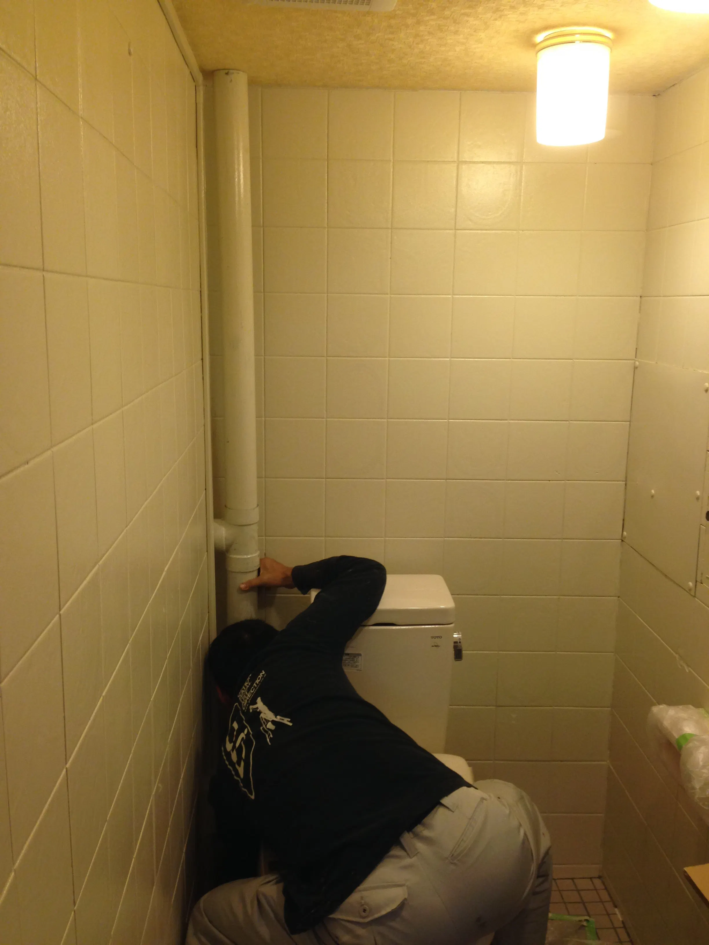 まずは何もなかったトイレにダミーの配管を取り付けヴィンテージ風の塗装を施しました。