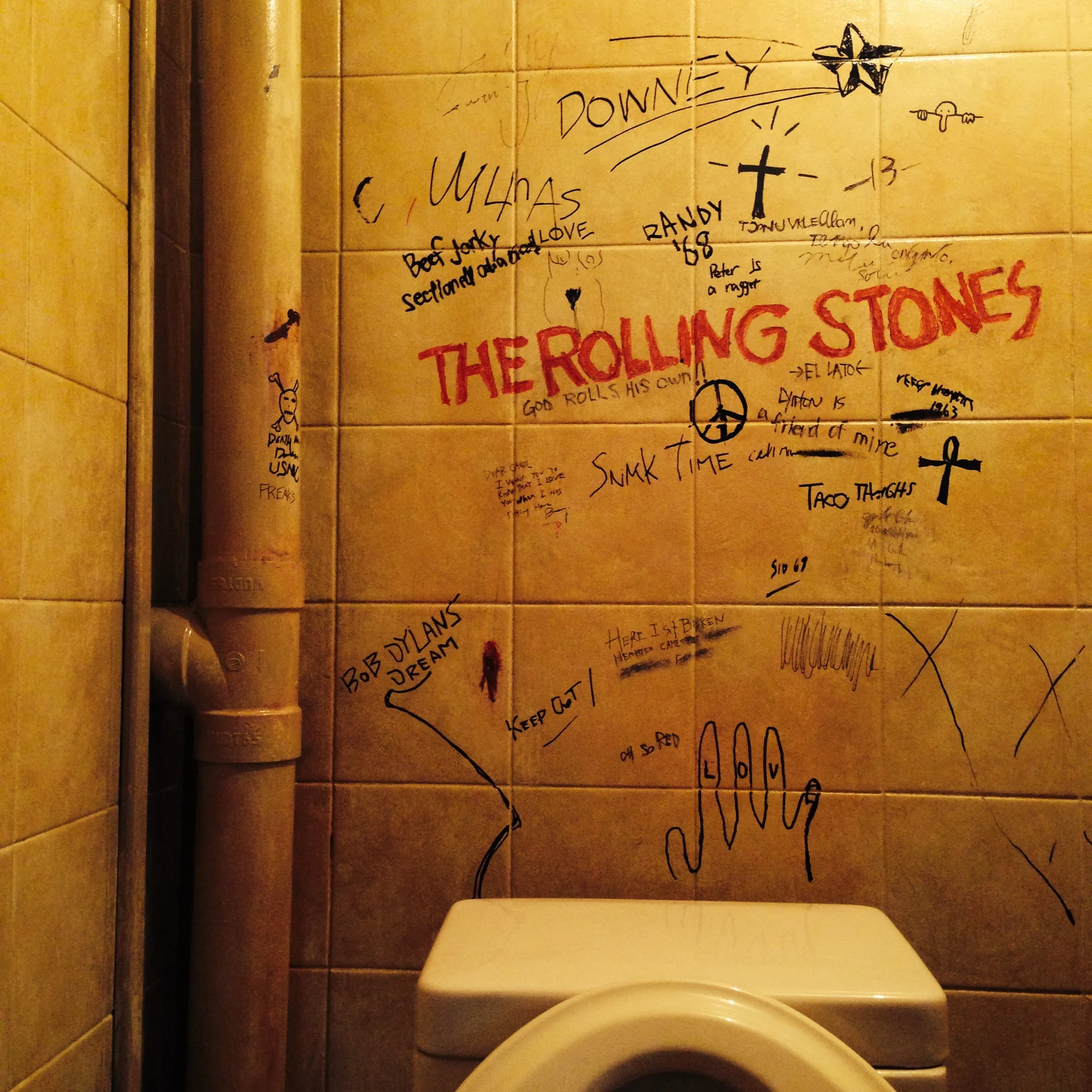 なかでも一番のこだわりだったのがローリングストーンズのトイレです。68年発表のローリングストーンズの名作「ベガーズバンケット」というアルバムがあるのですが、このアルバムのジャケットがこちらです。