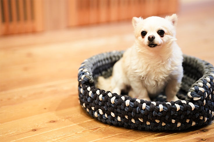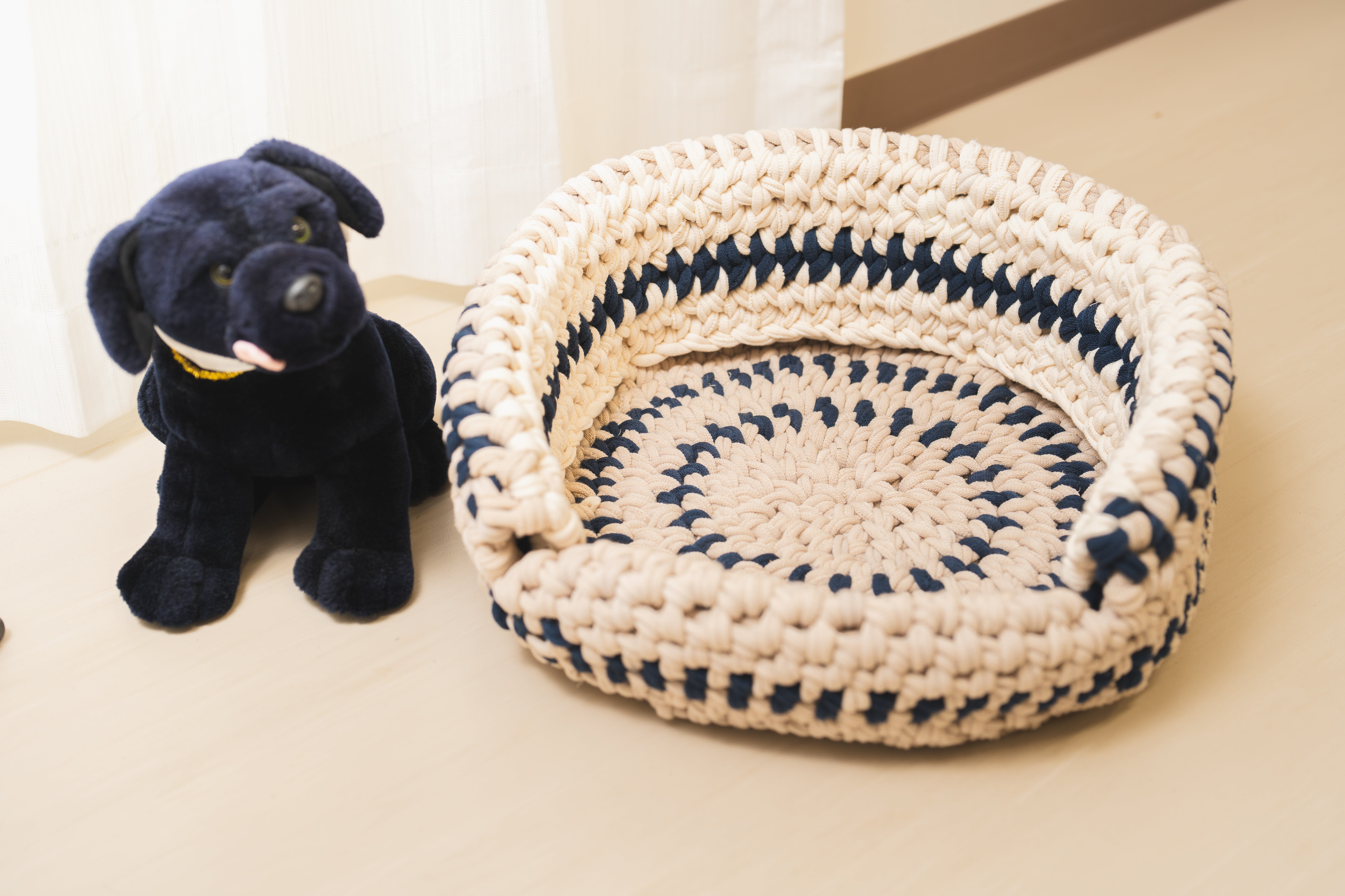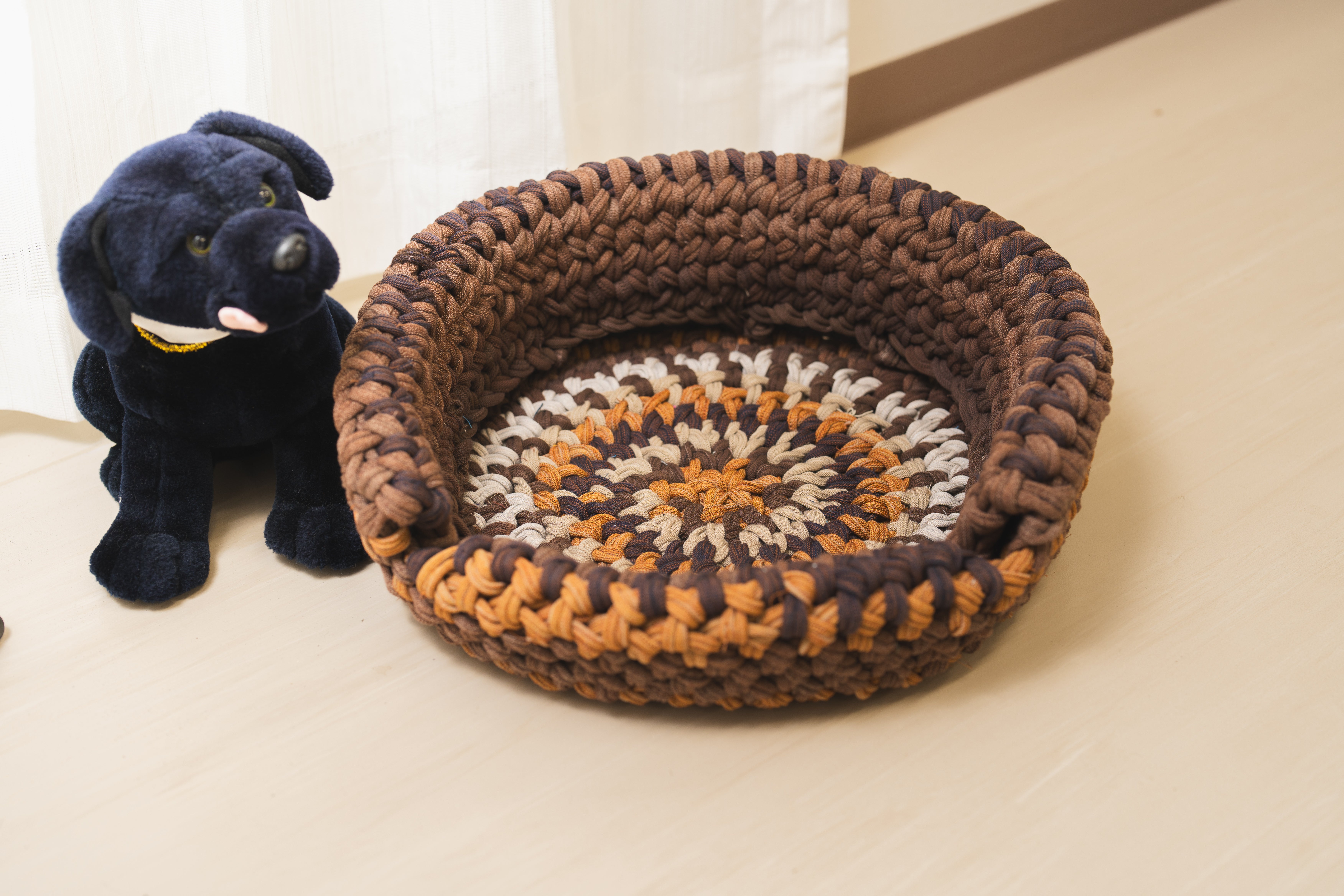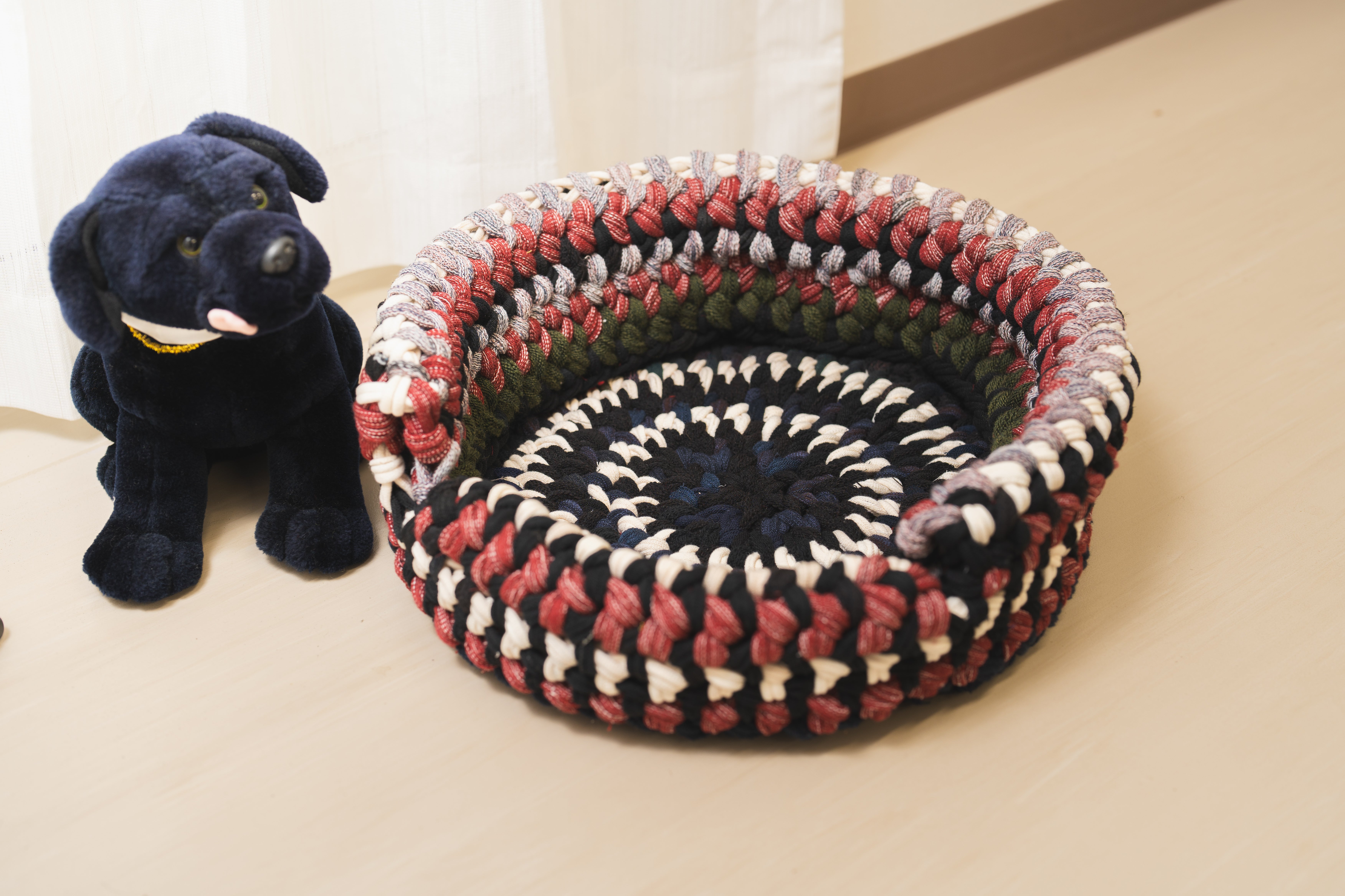 この「ペットベット」は「靴下のハギレ」から作られています。