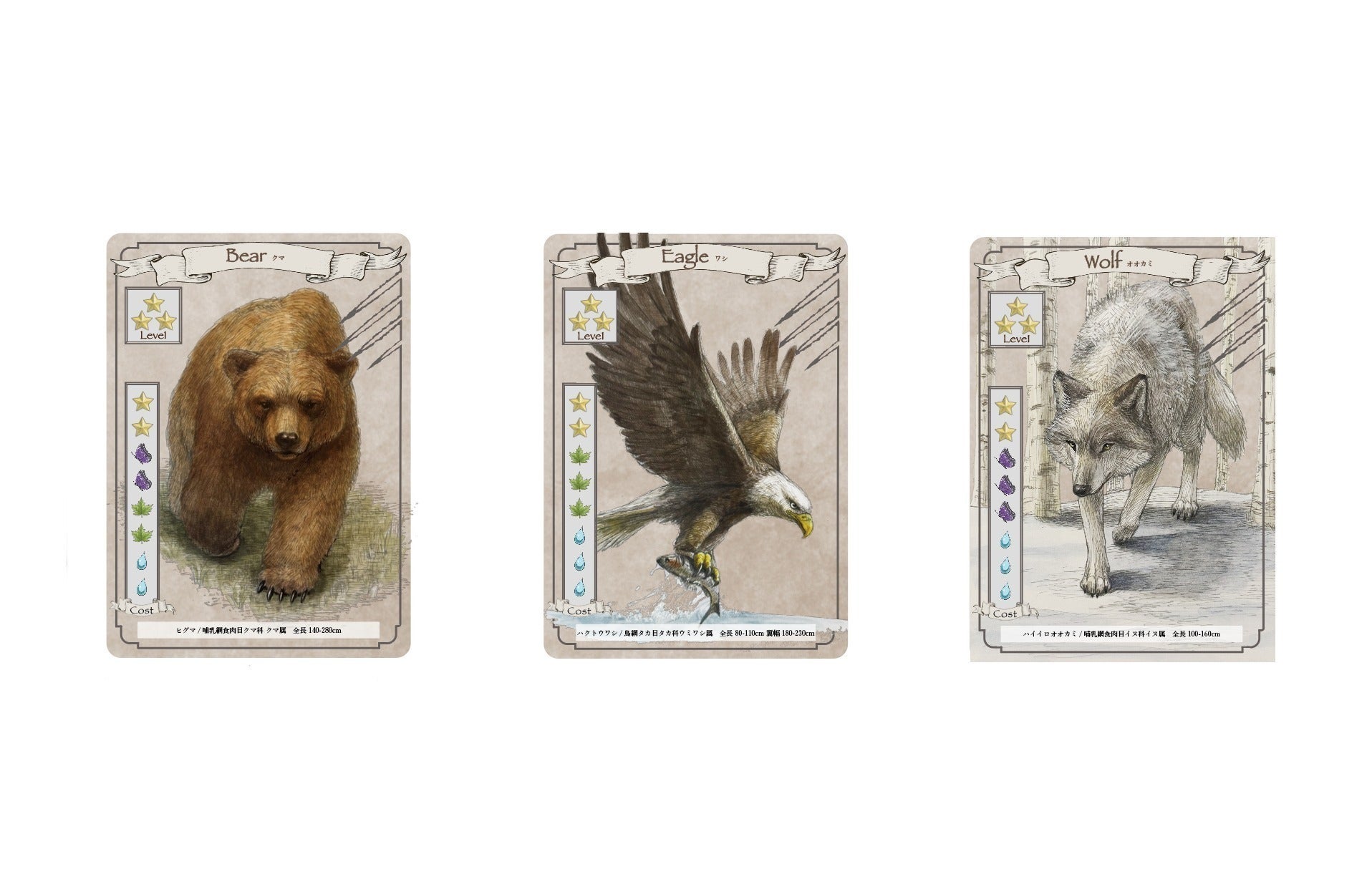 生物カードは3段階のレベルがあり、下位レベルを捕食することで出現させる。