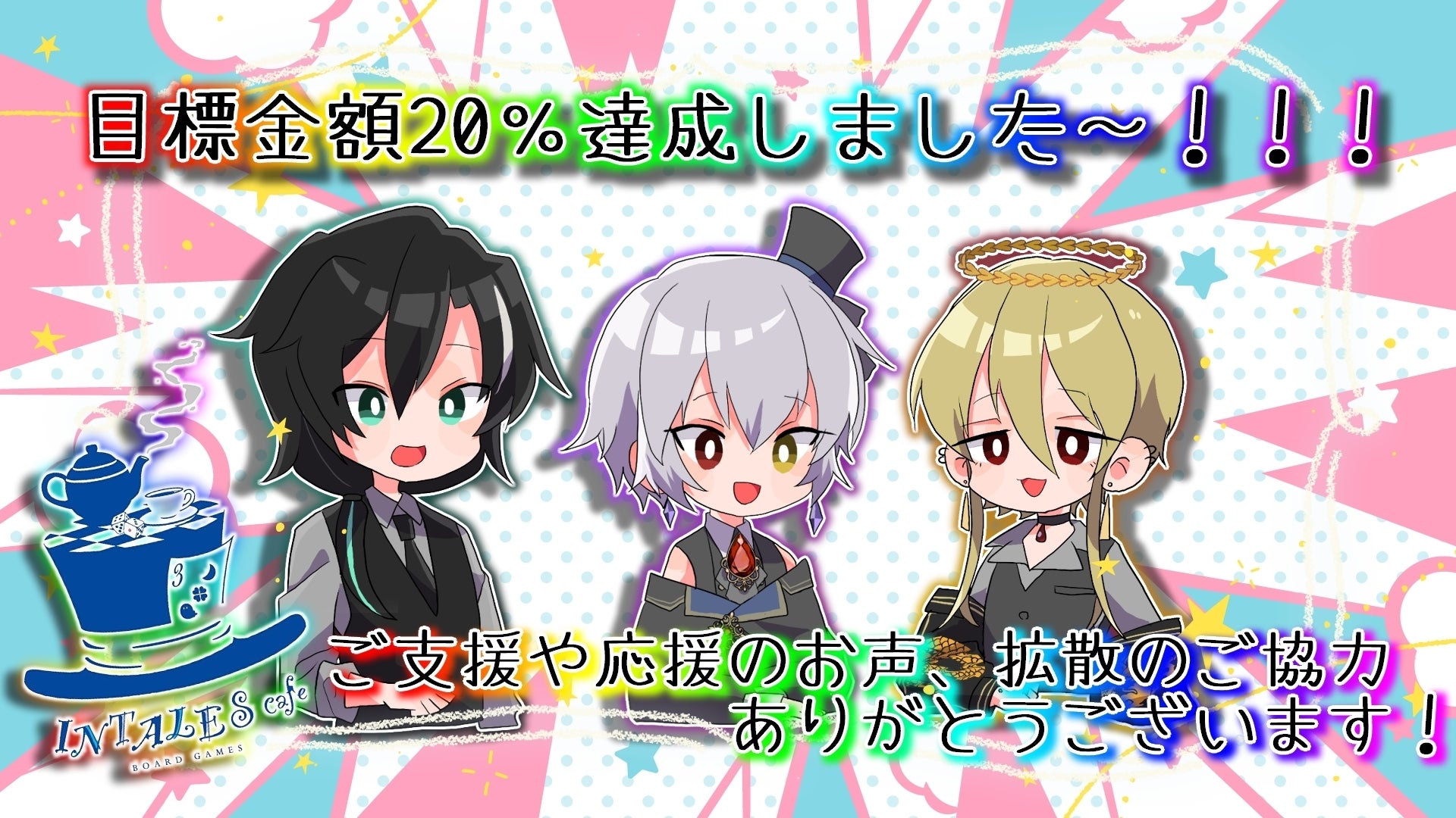 2024年11月18日でINTALES Cafeが1周年を迎えました!至らない点が多々あったかと思いますがここまでやってこれたのは応援してくださった皆様のおかげです!本当にありがとうございます!まだまだ頑張りどころなのでより良い空間を提供できるよう頑張ってまいりますので応援よろしくお願いいたします!また、INTALES Cafe1周年を記念して今までに使用させていただいていたイラスト、今回1周年を記念していただいたイラストを使用したオリジナルグッズをBOOTHにて販売しております!こちらは2025年11月17日まで販売する予定ですとってもかわいいグッズなのでご興味がある方はぜひチェックしてみてくださいませ!INTALES Cafe BOOTH