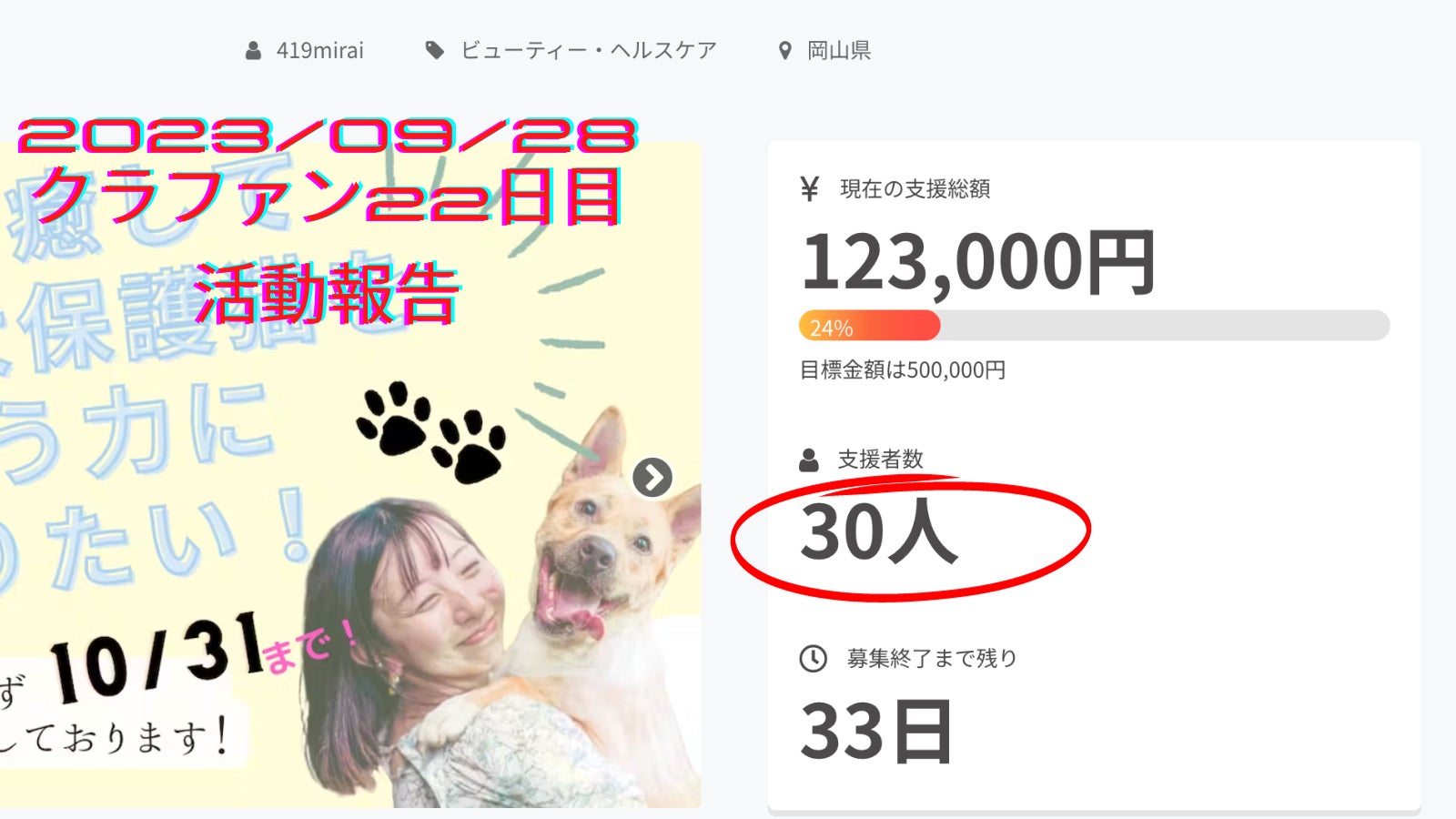 支援者数が、100人に向けて後70人!残り33日ですが、まだまだこれから!
