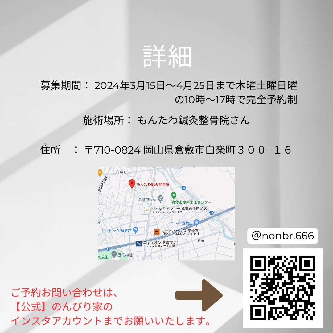 ご予約・お問い合わせは、のんびり家『公式』 @nonbr.666