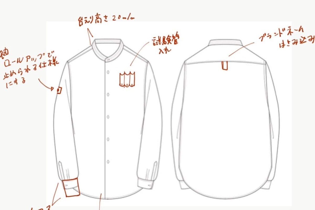 ユニフォームは「土に還る服」を展開するアパレルブランドSyncs.Earthに依頼し共同開発中です。絹織物「黒八丈」に使用される絹糸のボタンをアクセントに施したデザインで、着古したユニフォームは燃やすことなく土に還り、畑の栄養となりまたお店に還ってきます。