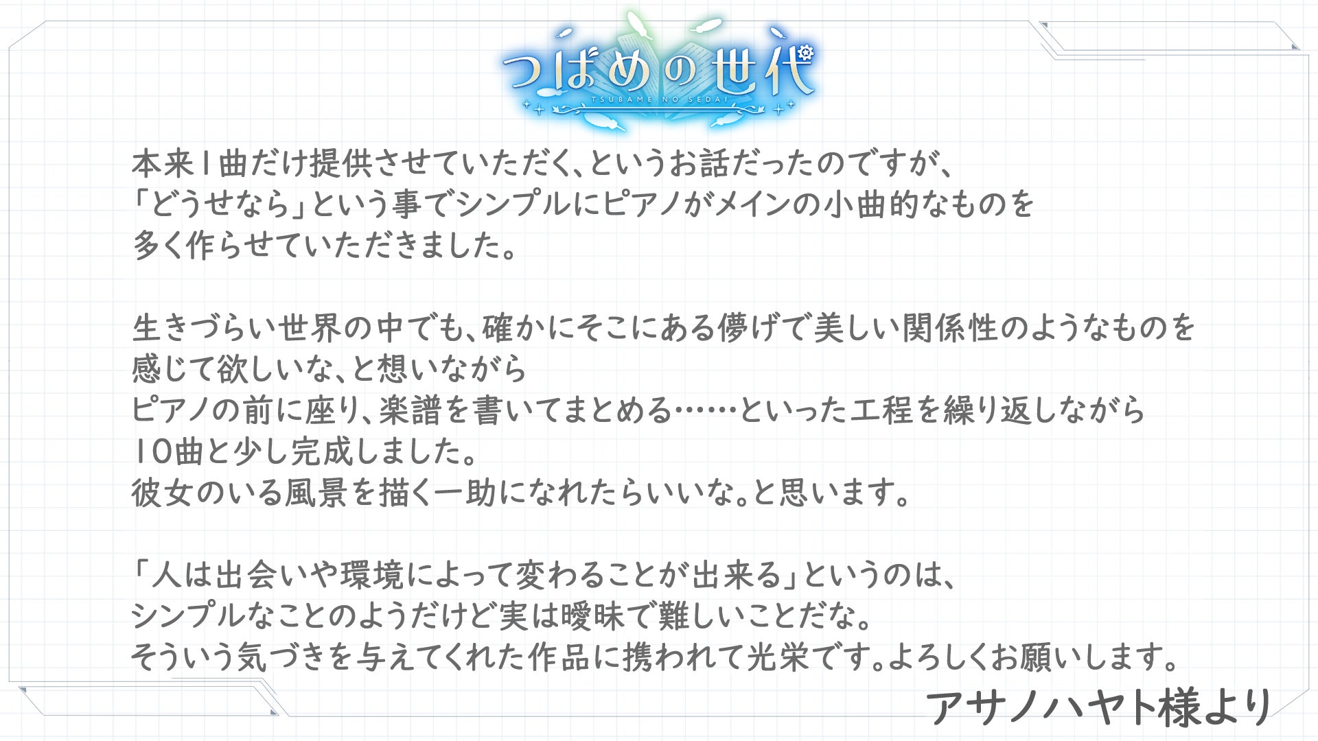 こちらはアサノハヤト様からの本作へのメッセージです。
