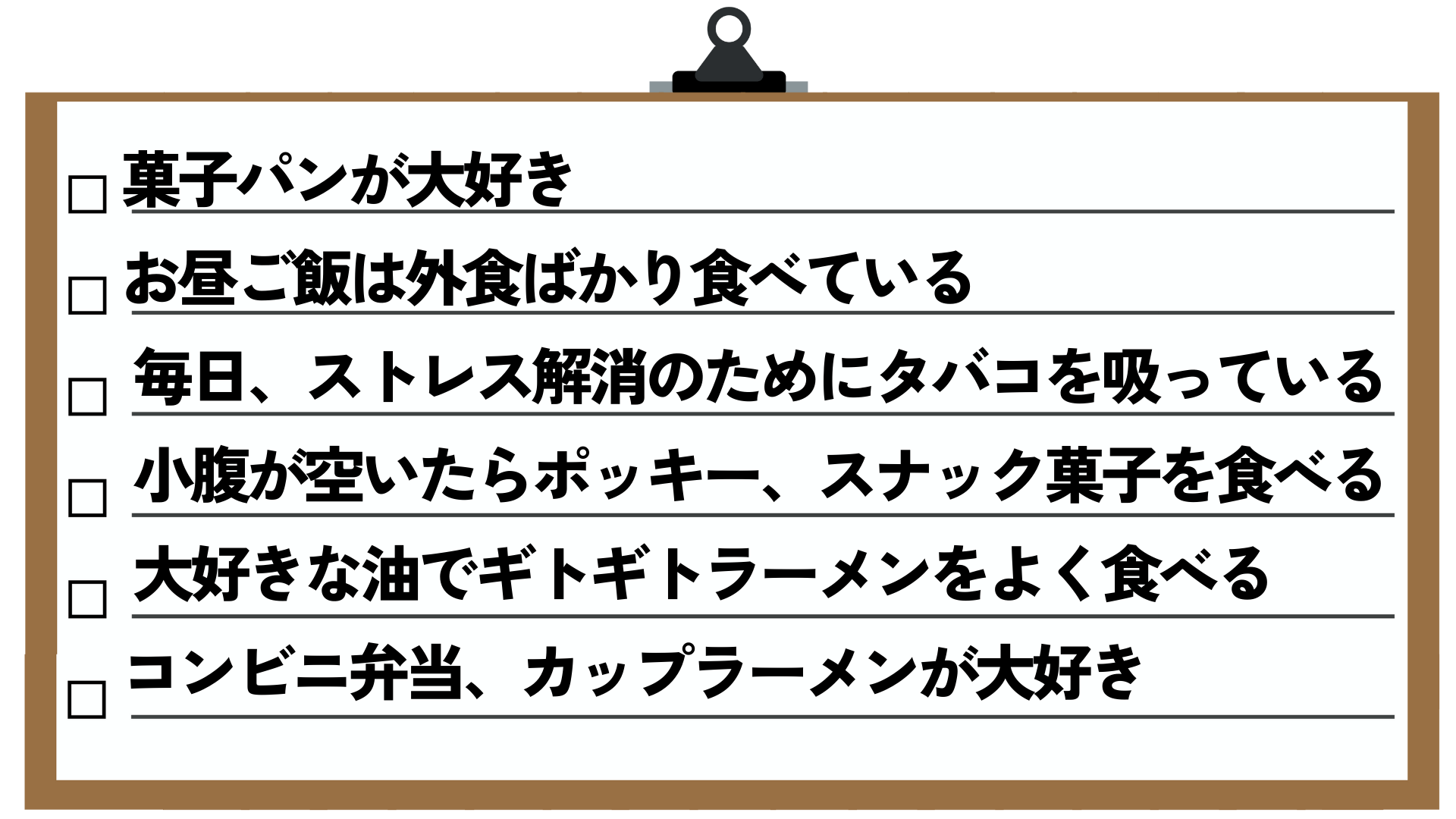 あなたや、お子様、その他のご家族ごとに、人を分けてチェックして見てください。実はネタバラシではないですが、今から約20年前、大学院生だった私はこの全ての項目に当てはまる生活をしていました。