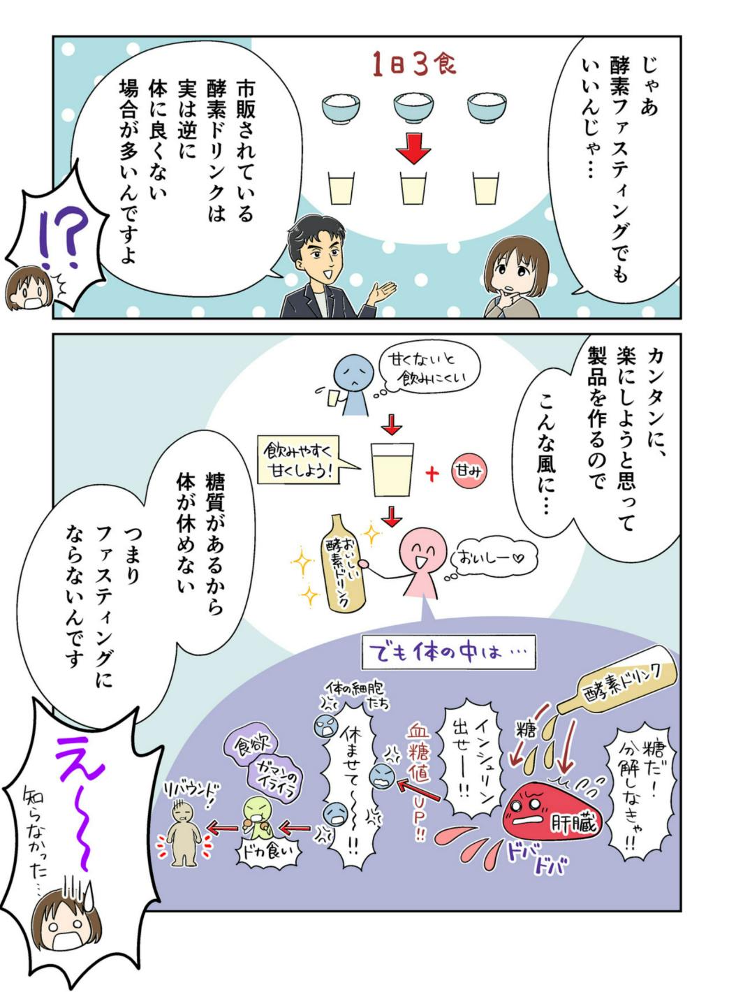 酵素ドリンクファスティングはファスティング期間中も糖質を取り続けるので、内臓が休めず、オートファジー機能が働かず、結局、老廃物を外部に排出できない、デトックスできない点は盲点になっているので注意が必要です。