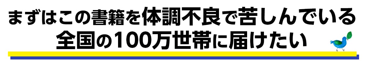 今回のプロジェクトは、全国100万世帯にこの本を届け、家族の健康を守ることを目指しています。