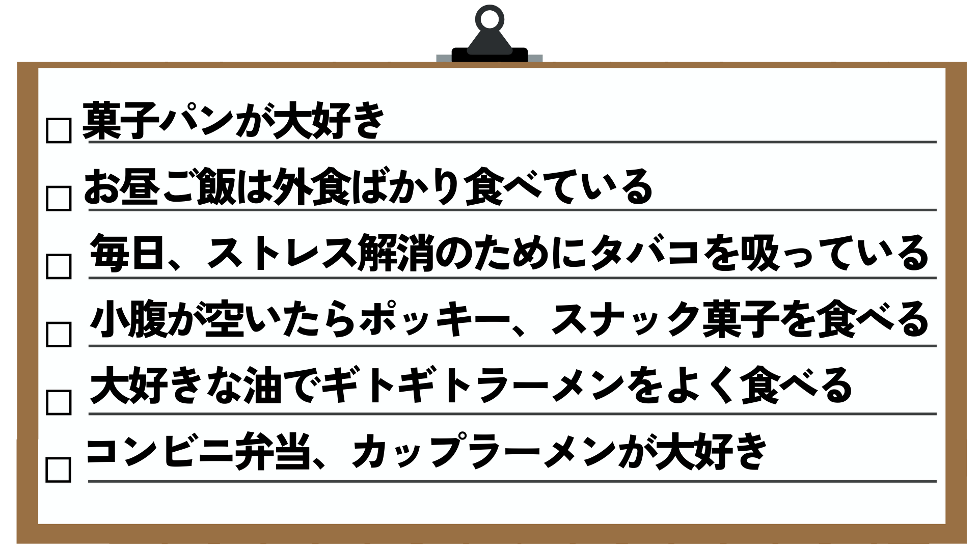 あなたや、お子様、その他のご家族ごとに、人を分けてチェックして見てください。実はネタバラシではないですが、今から約20年前、大学院生だった私はこの全ての項目に当てはまる生活をしていました。