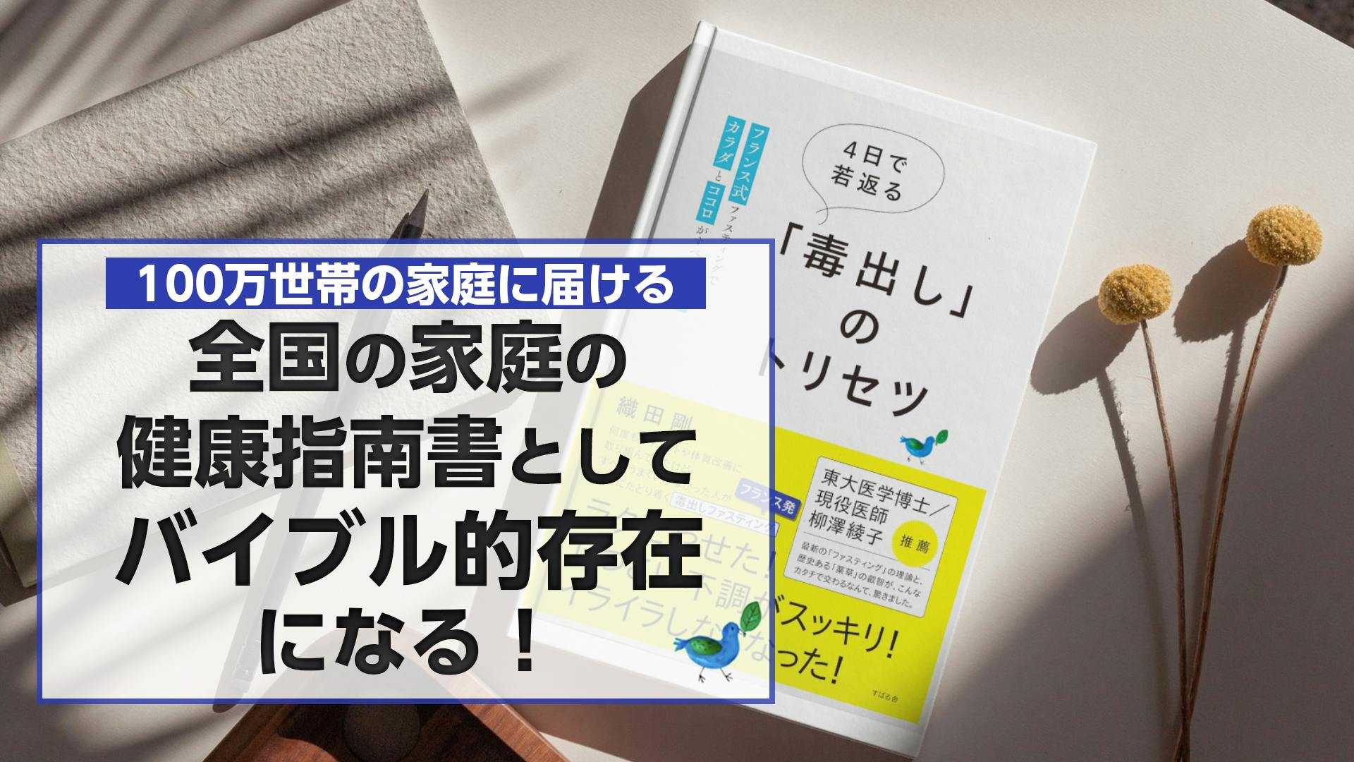 皆さまからご支援いただいた大切な資金は、新著 『4日で若返る「毒だし」のトリセツ』を100万世帯の家庭に届けるための必要経費に充てさせていただきます。