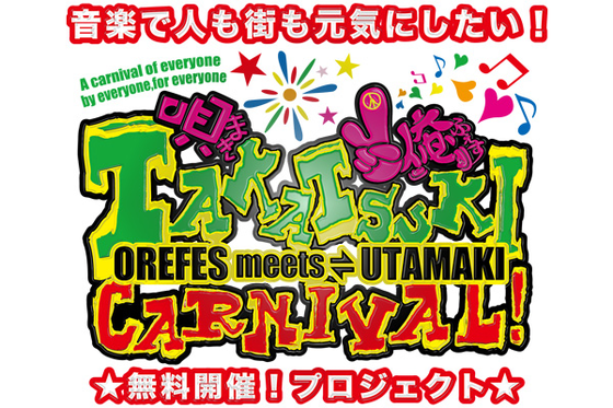 この度わたしたちは、来たる6月9・10日の二日間、大阪府高槻市にて、『俺ふぇす』と『唄まき』というそれぞれ独立した音楽イベントをコラボさせた『TAKATSUKI CARNIVAL!俺ふぇすmeets唄まき♪』を開催することに致しました。