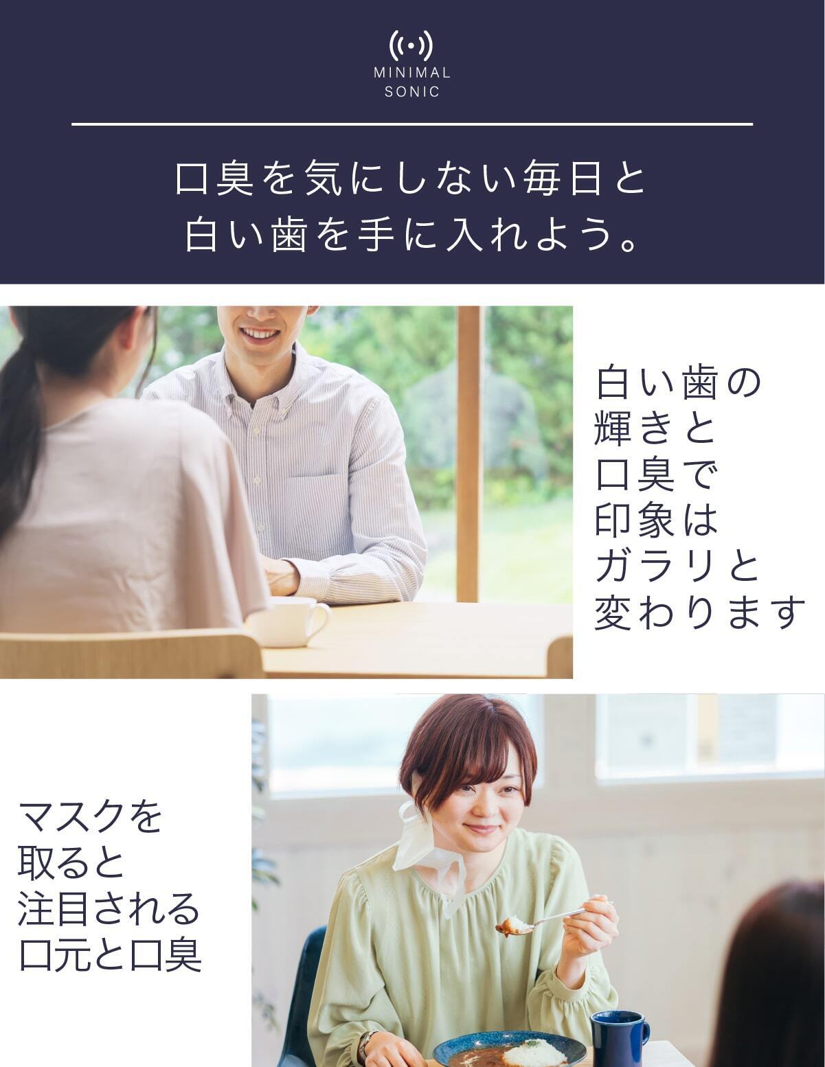 私達は日本の電動歯ブラシ普及率22%をなんとかしたいと考え、ミニマルソニックを誕生させました。口腔内のケアは大変重要なものであるにも関わらず、そのツールの進歩はまだまだです。ミニマルソニックが少しでも日本の電動歯ブラシ普及のきっかけになれば大変嬉しいです。
