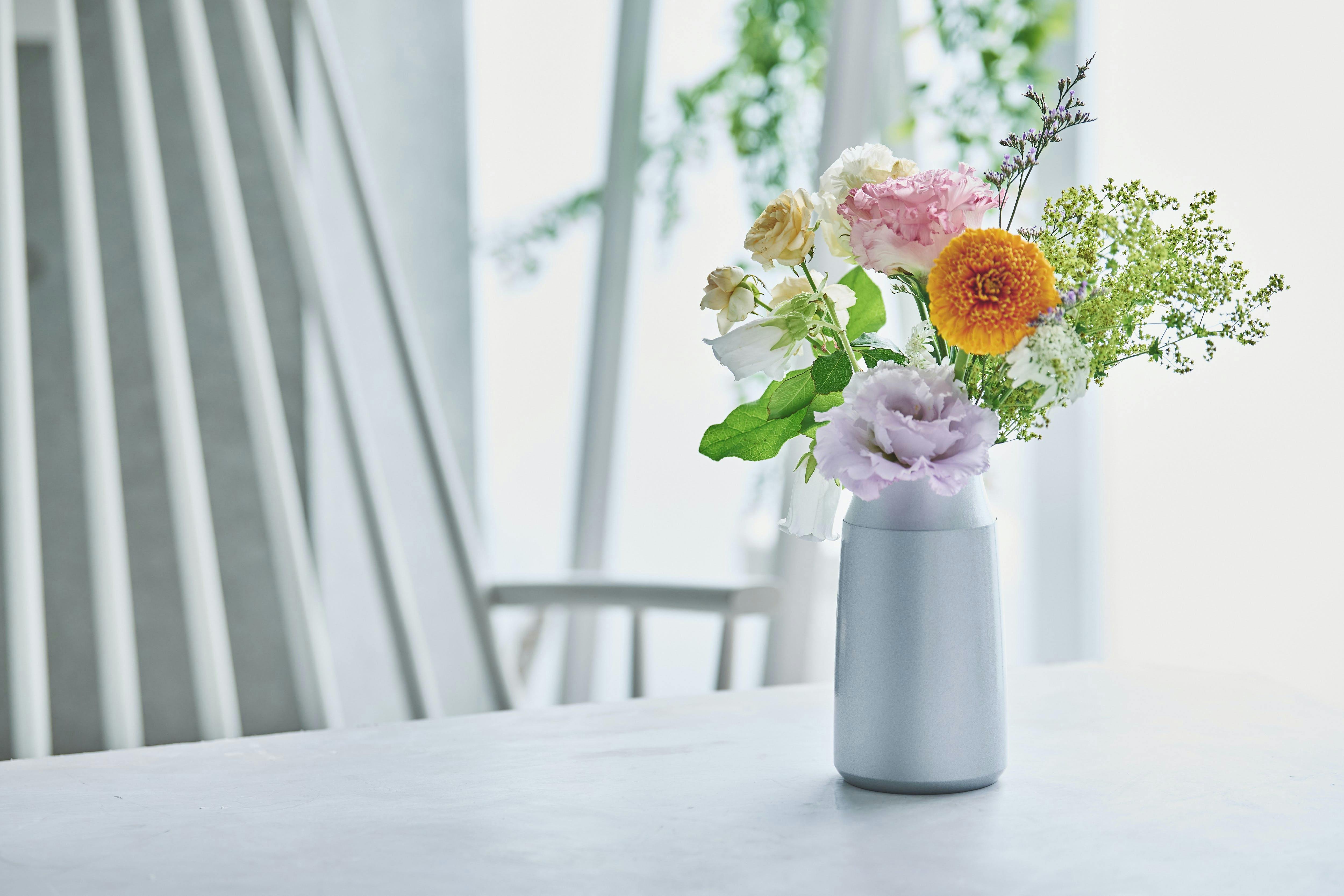 花瓶の上部は2Wayとなっており、花束飾りにも一輪挿しにも利用可能。毎日の暮らしの中で、大切な記念日の花束はもちろんのこと、夫婦それぞれ好きな花を飾る一輪挿しとしてもお楽しみ頂けます。家族、夫婦それぞれの個性を1つの花瓶で表現します。上蓋の向きを変えて花束から一輪挿しへとカスタマイズします。