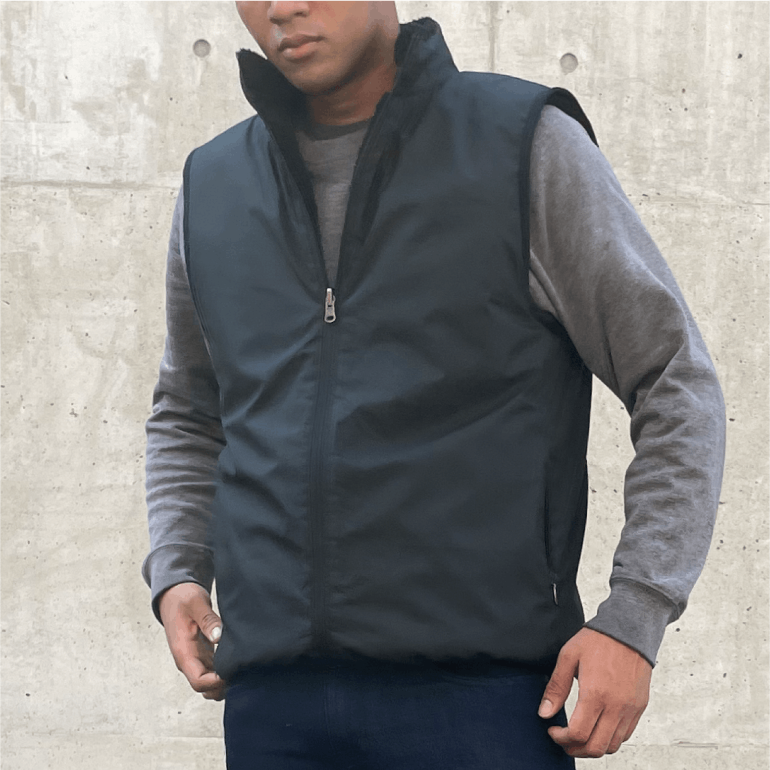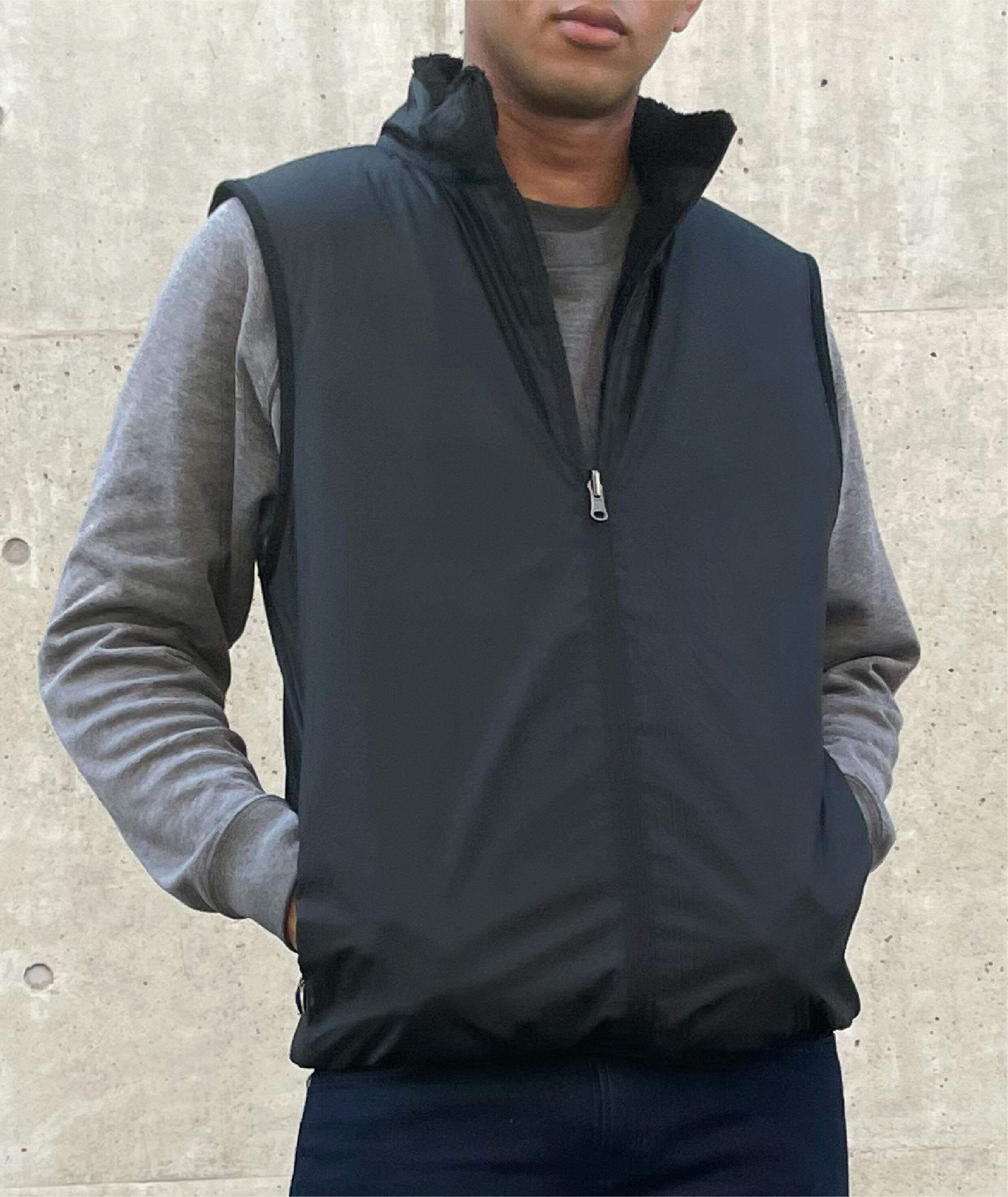 両面に別素材を採用したリバーシブルベストを誕生させることに成功いたしました!