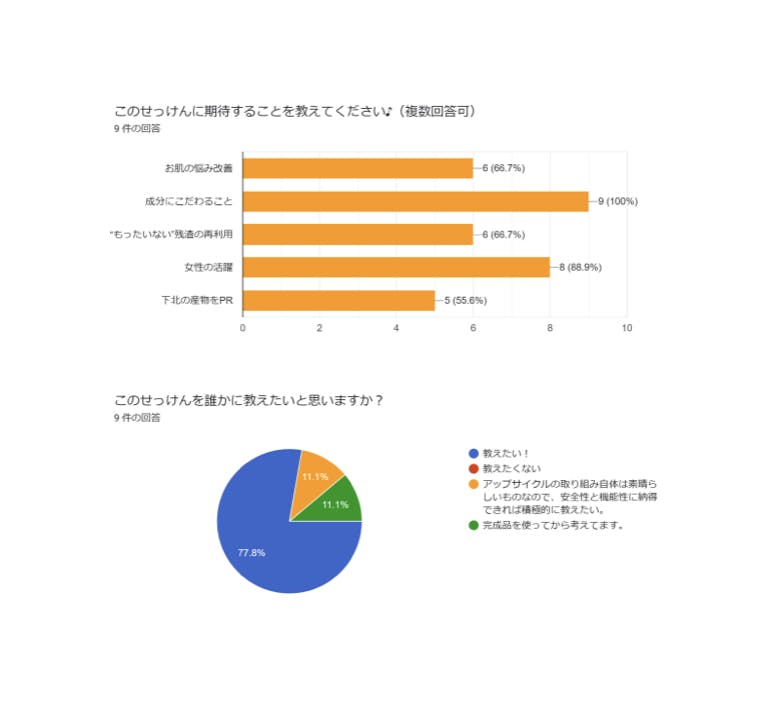 第二弾のアンケートでは石鹸を継続して使いたいか、用途や予算、期待することなどを伺いました。