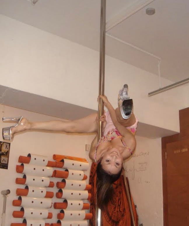 もっとポールダンスを楽しみたいと思い、エステサロンの横にポールを立てた即席のポールダンス教室を大阪府枚方市に開校。