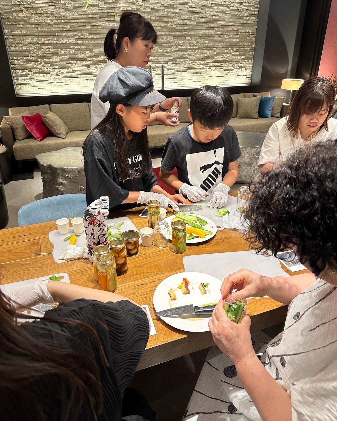 夏休みは子どもたちの参加も多く、親子で包丁を握ってる姿は微笑ましい光景でした。道後ピクルスの理念でもある「食を通して世界中の人々を幸せにする」が小さな一歩づつ叶えられています。ピクルスに合う野菜や作り方、お家で作るならこんな風に、、、みなさんとても意欲的で、終始質問や笑顔が絶えない本当に楽しいひと時。