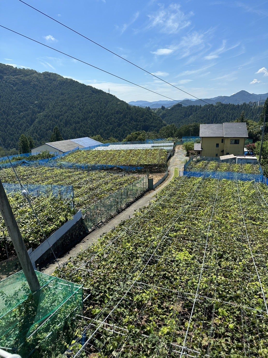 ここ肱川の美味しい空気と水、里山の寒暖差が揃って甘さと酸味とハリのある葡萄を育ててくれます。山内さんはお客様に最高に美味しい状態の葡萄を提供する事を第一優先に考えながら、日々ぶどうたちを育てています。