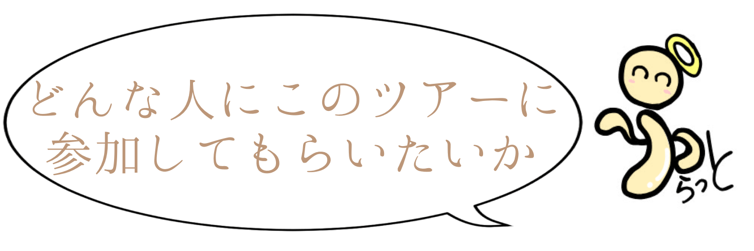 今回の第一弾のツアーに少しでも興味を持っていただけたら、誰でもご参加いただきたいです!