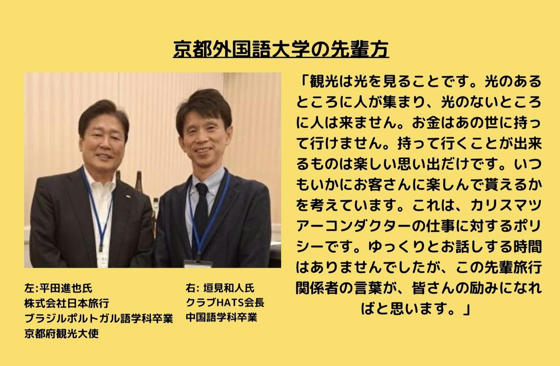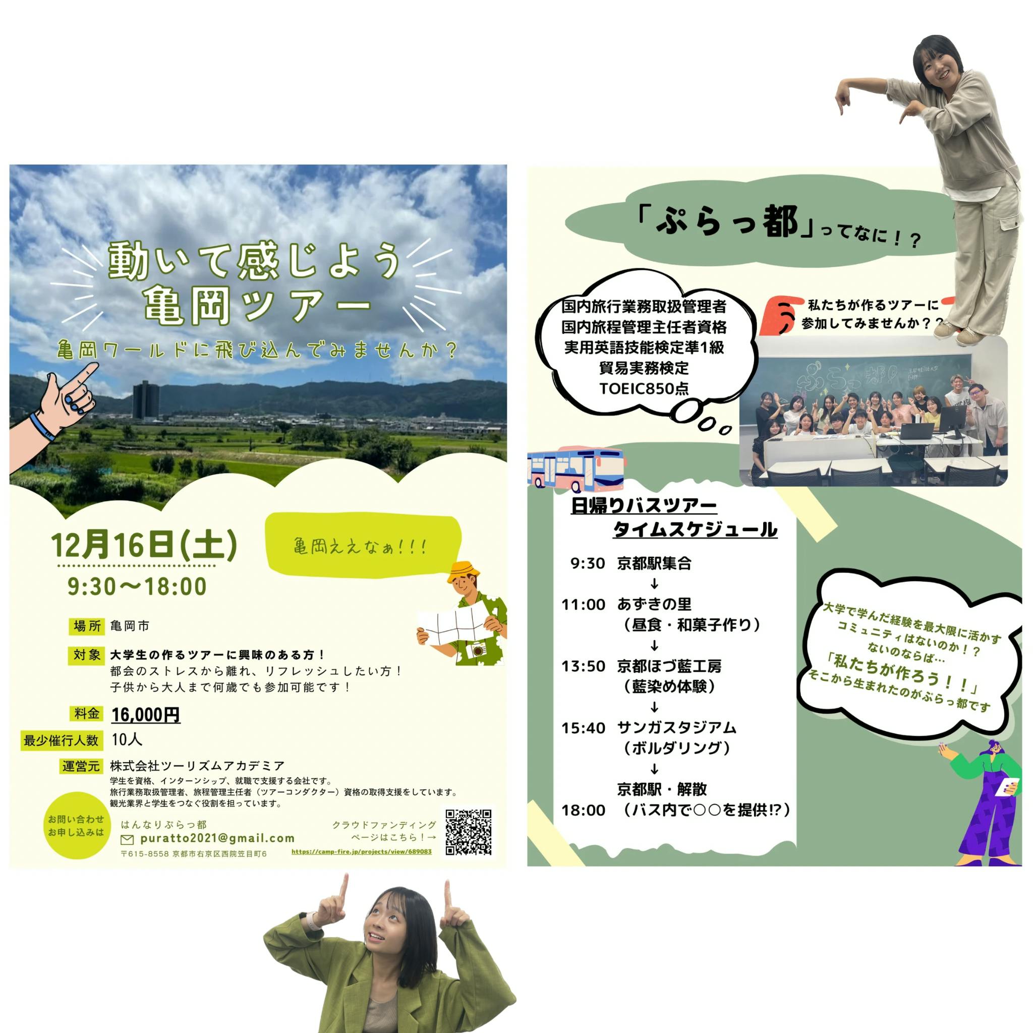 今年の4月から作り上げてきたツアーを、私たちは自信を持って提供できるほどに仕上げています。ツアーへ参加してくださった方には、必ず、「一味違った時間だった」、「はんなりぷらっ都のツアーにまた参加したい」と思ってもらえるように活動してきました。是非多くの方に参加していただきたいと考えています。たくさんのご参加お待ちしております!!