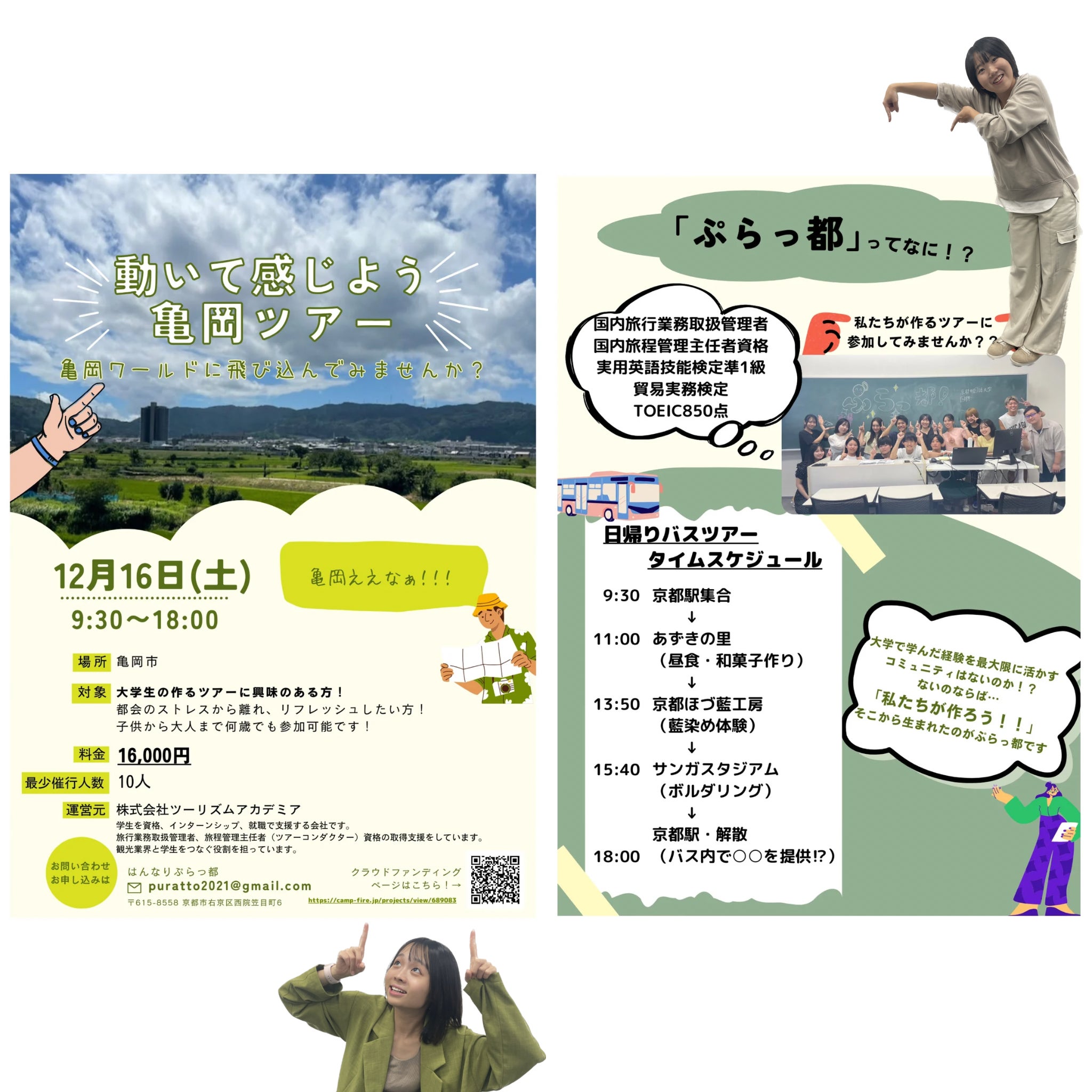 今回のツアーは私たちにとって記念すべき第一弾のツアーです。このツアーを通して多くの方に亀岡市という多くの魅力が詰まった町のことを知ってもらいたい、そして好きになっていただきたいと考えています。そのため、老若男女問わず多くの方に参加してもらいたいと考えています。
