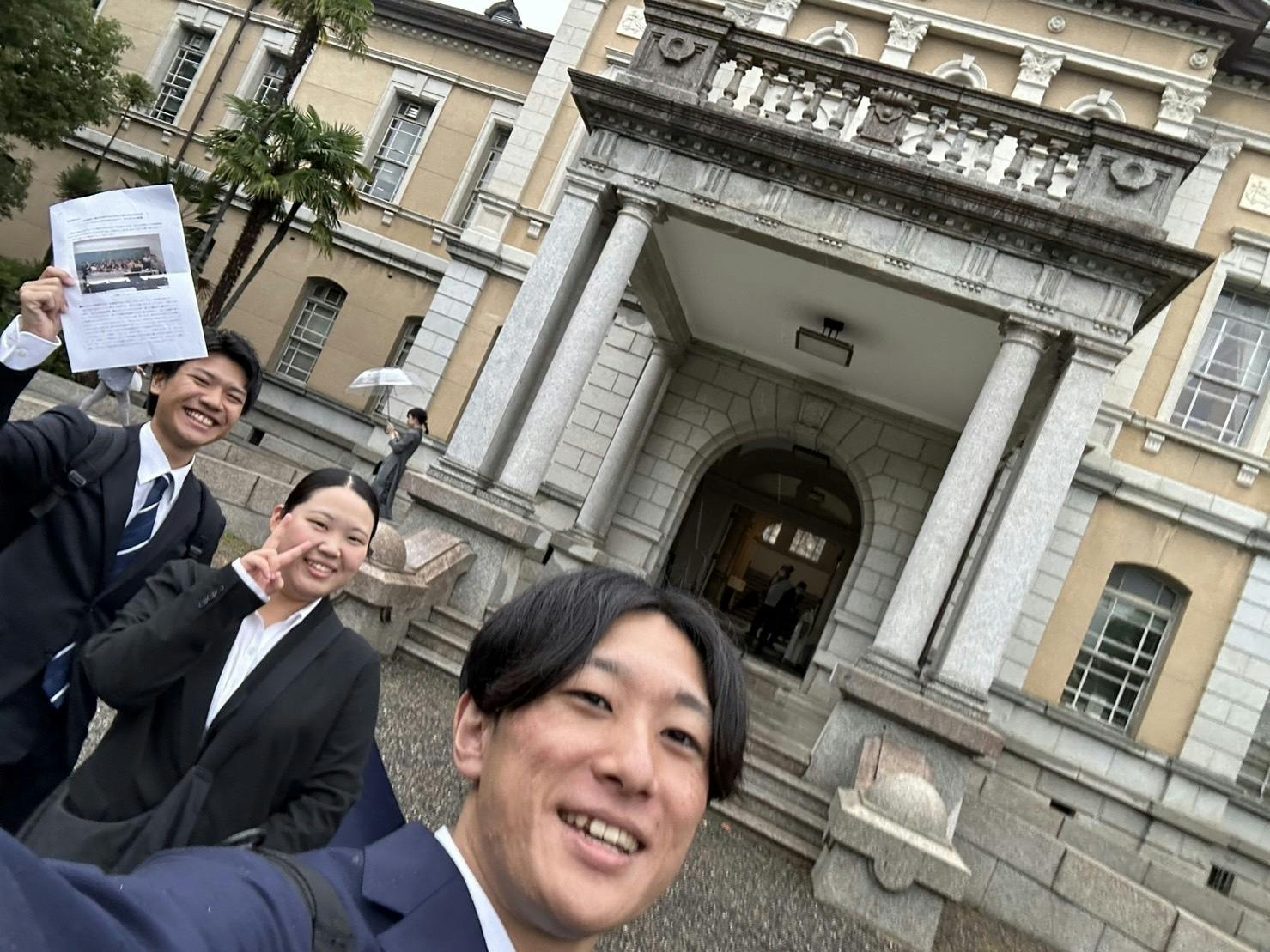 慣れないスーツで記者の方と話をすることに3人とも緊張していましたが、自分たちと行なっている活動についてしっかり伝えることができました!