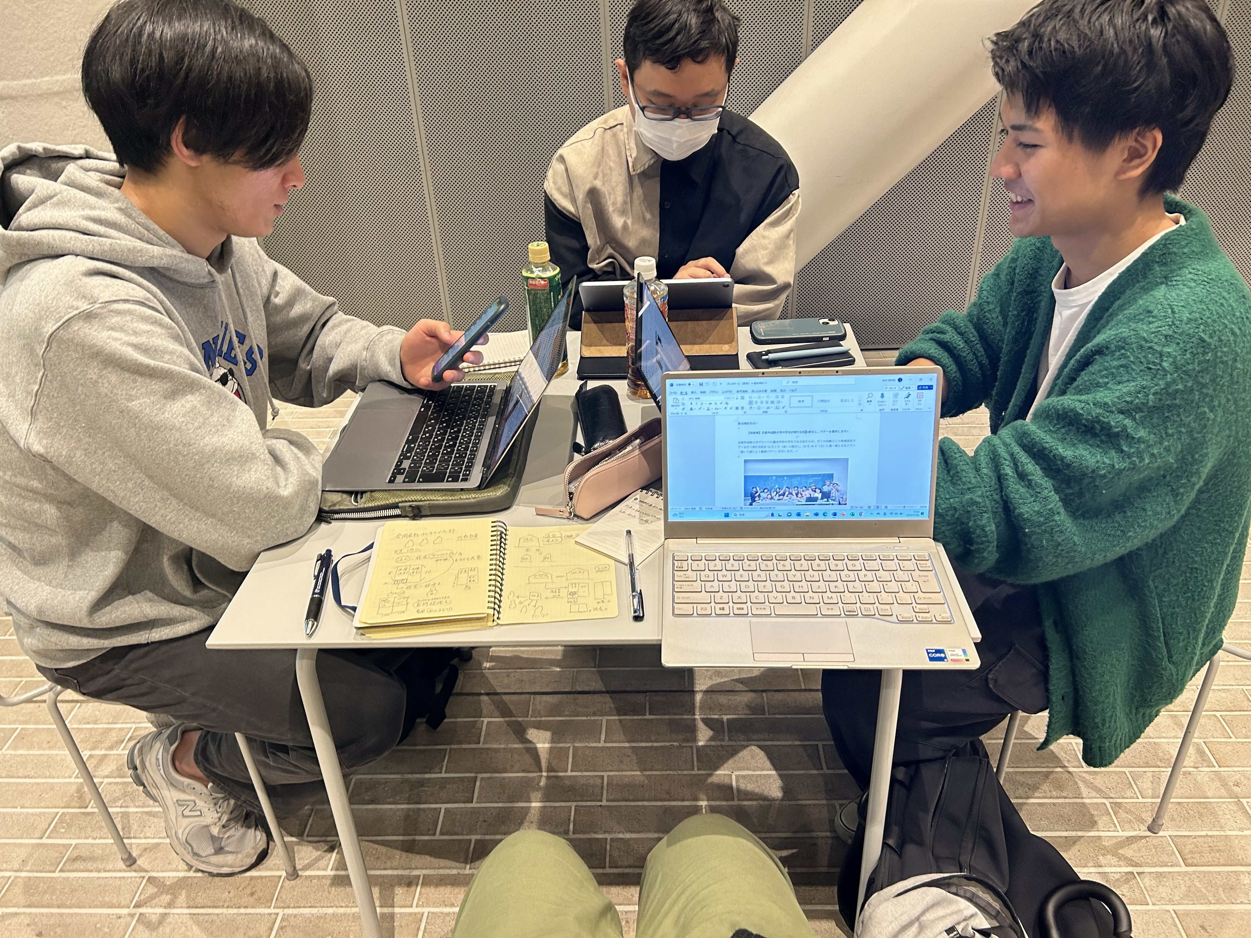 集まれない時でも、オンラインで朝や夜にミーティングをして、話し合っています!