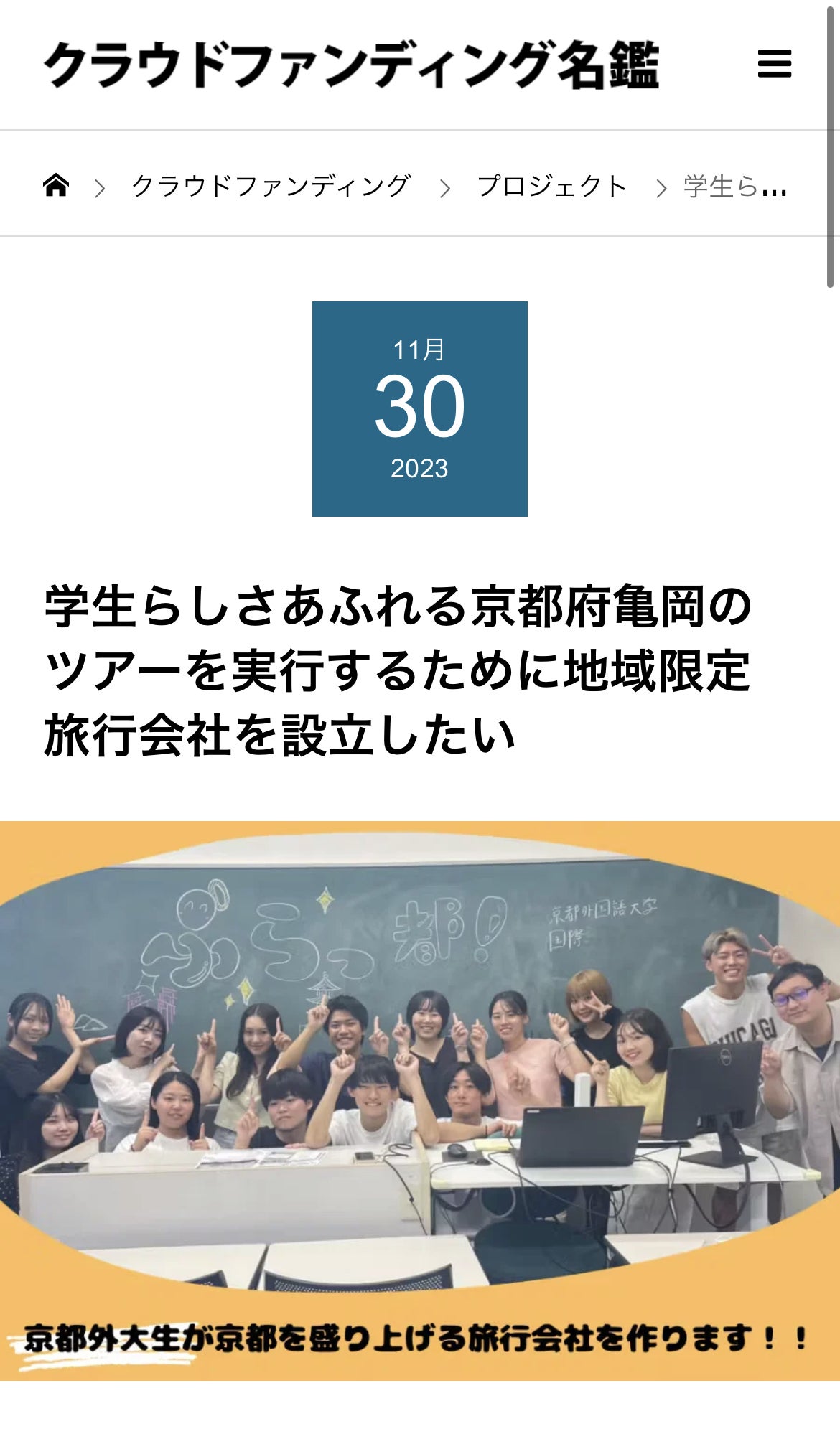 クラウドファンディング名鑑は「クラウドファンディングをもっと身近に」をコンセプトに運営を開始しました。これまで1000を超えるプロジェクトを紹介しているWebサイトです。そんな素敵なサイトから掲載依頼があり、私達も嬉しく思っております!!