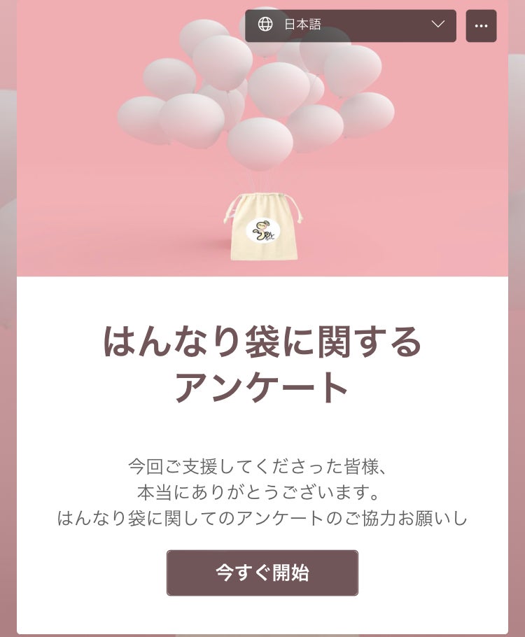 本日は返礼品として作成したはんなり袋の中身の商品について、協力していただいている企業様に感想を届けたいと思い、支援者様向けにアンケートを作成しました。