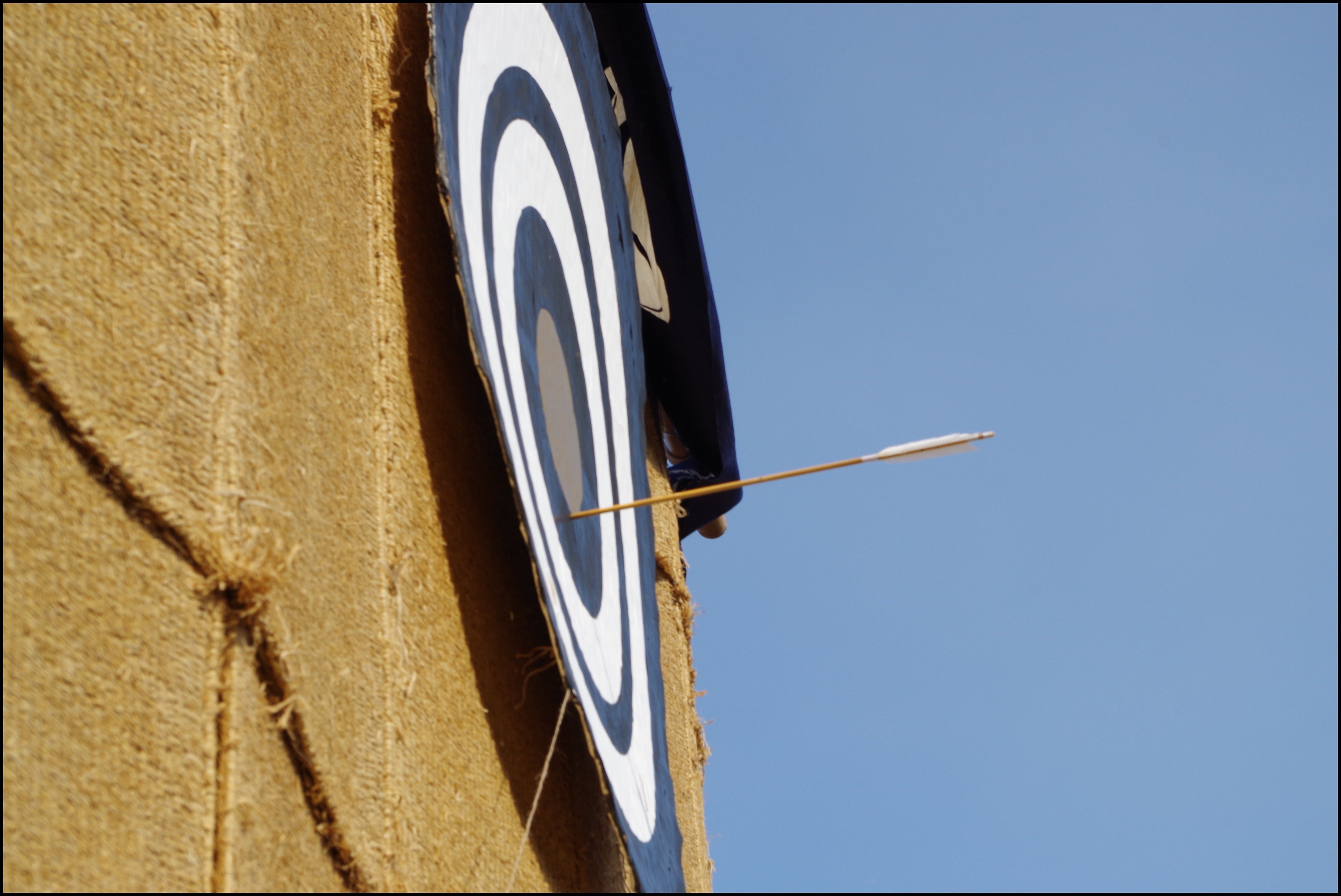 「ねーろた、ねろた、親弓がねろた」の掛け声のもと、交互におよそ27メートル離れた的に向けて、射主はそれぞれ6本の矢、合計12本の矢を放ちます。