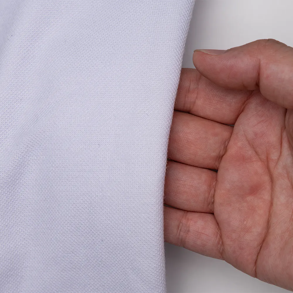 このポロシャツの最大の特徴は「着心地」です。綿混のニット生地のおかげでポリエステル65%ながら、綿の感覚を強く感じられる仕様となっており、滑らかな手触りと快適な着心地を実現しています。通常のポリエステル製品とは異なり、汗をかいても蒸れず、サラッとした肌触りが続きます。