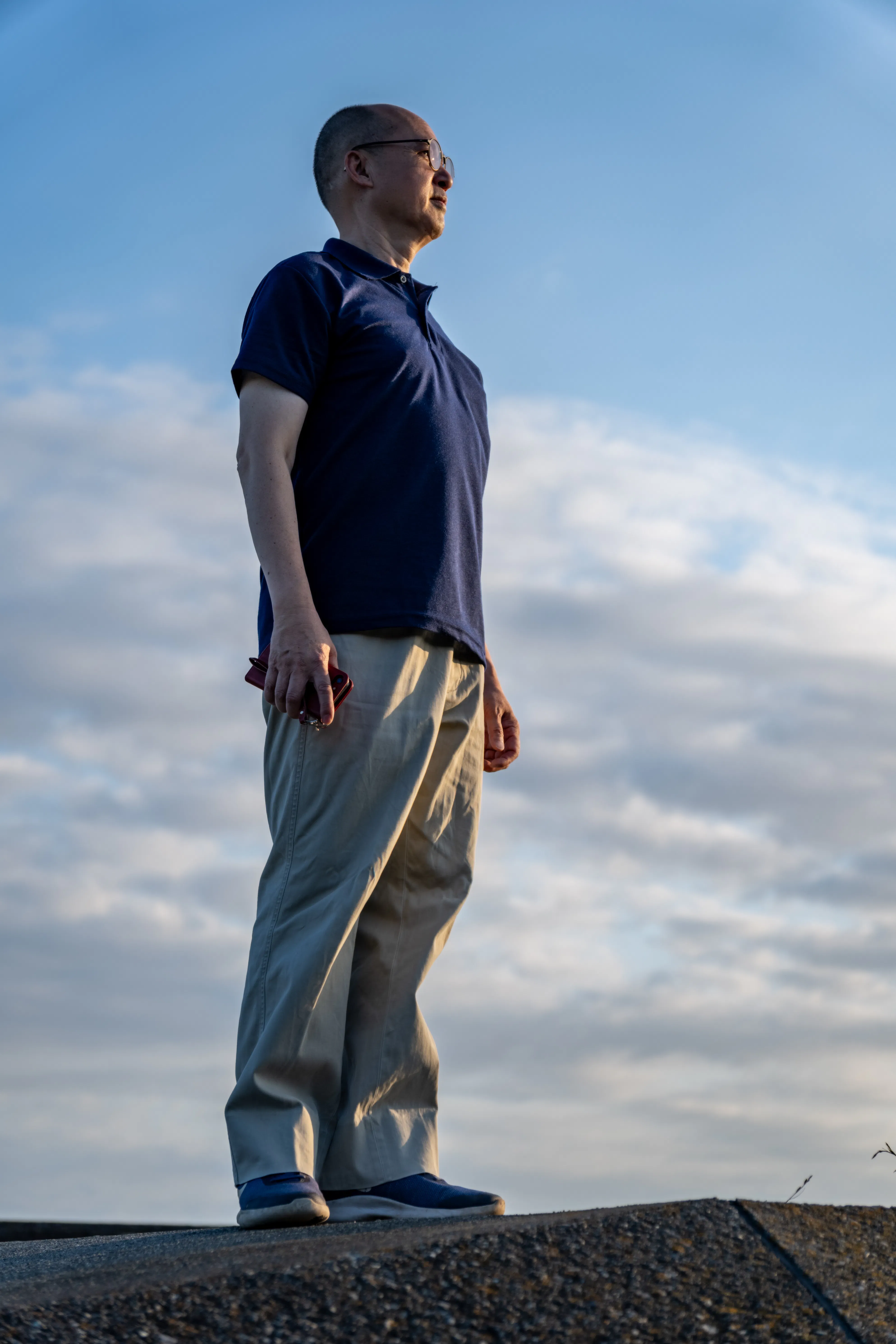 ※写真のポロシャツはLサイズ、モデルは身長165cmの弊社代表です。撮影:スタッフ