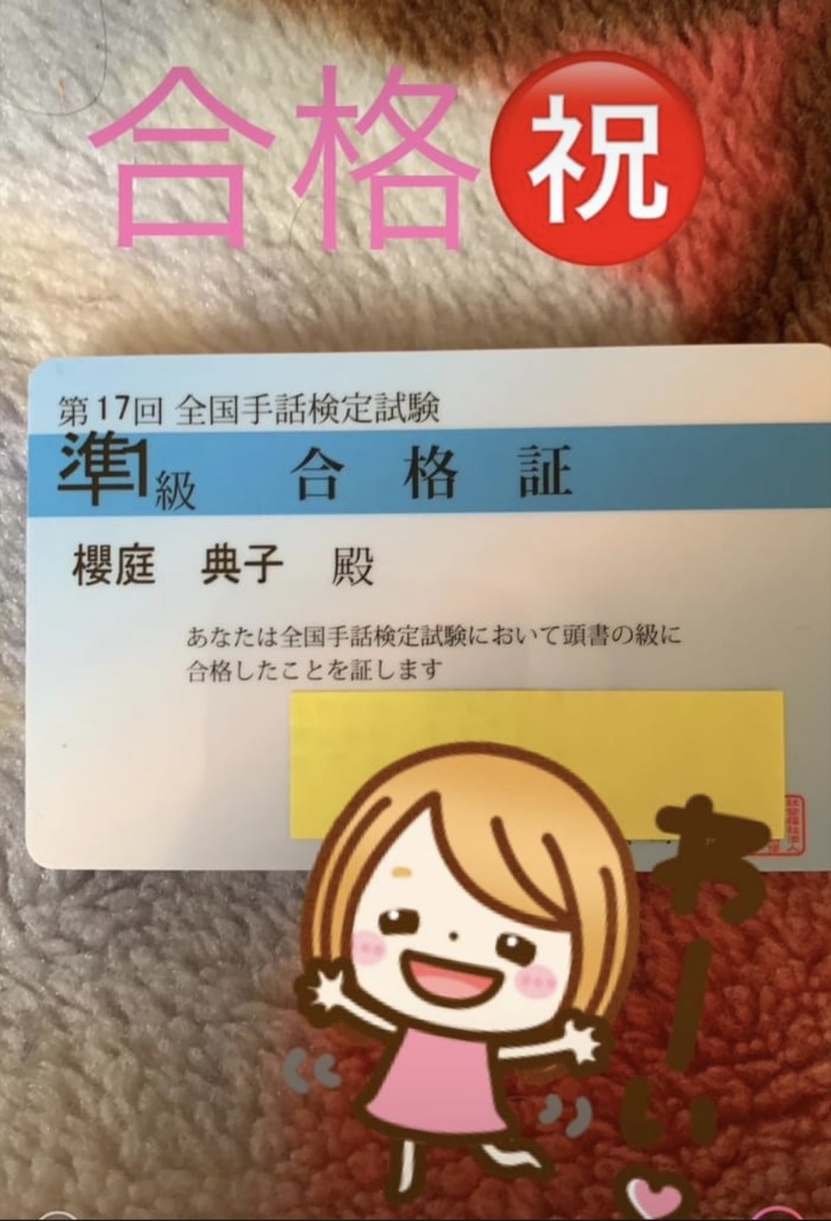 12月全国手話検定試験準1級取得