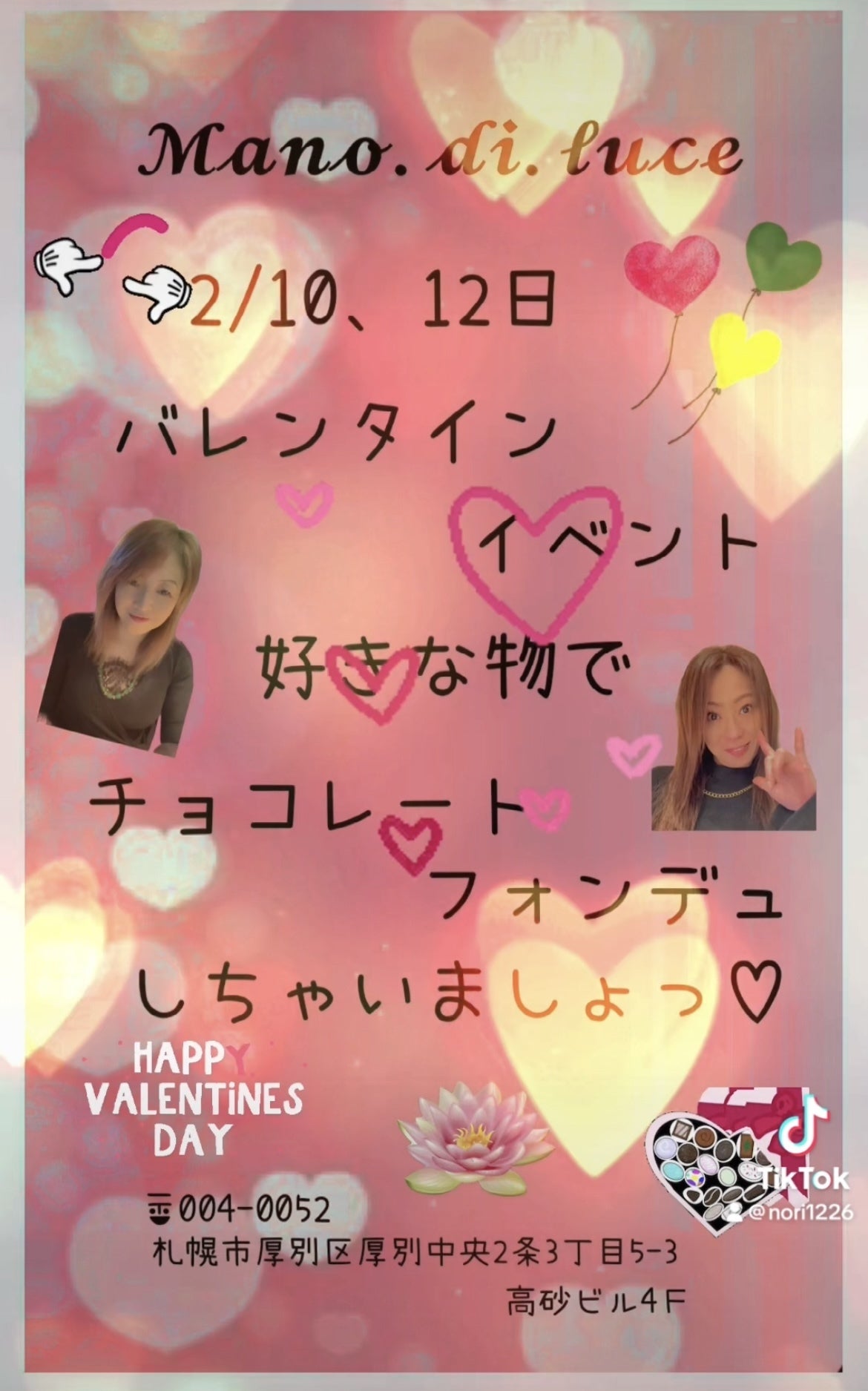 2024/02/02 15:21皆さま、こんにちは。毎日寒い日が続く札幌です。路面もテカテカで遂に思いっきり転んで頭、首と背中強打してしまい痛みがまだあります。それはさておき2月と言えばバレンタインデーがありますよね。恋焦がれてる人が好きな人にチョコレートを上げると言う風習ルーチェでは『チョコレートフォンデュ』でバレンタインイベントを開催したいと思っています。その模様も写真でお伝えしますね。そしてこのままだと後2ヶ月でお店が無くなってしまいます。『無くなって欲しくない』と言う声もありますが、ご支援が得られない場合苦渋の決断となります。なので1人でも多くの皆様にご支援の御協力が今後のお店継続にかかってきますので、何卒宜しくお願いいたします。#聴覚障害#中途難聴#精神障害#手話#アットホームなお店#交流出来るスナック#manodiluce #差別のないお店#札幌初出店#スタッフ聴覚障害#ママ精神障害 もっと見る