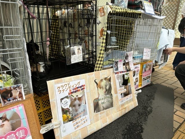 クラウドファンディングもあと7日、参加した猫ちゃん達とボランティア一同、PR頑張りました。代表の北尾も手作りの掲示物を持ってきてくれて熱心に見ている方も多くいらっしゃいました。