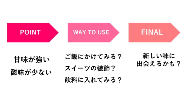・ごはん用のふりかけにこだわらずデザートにかける (アイス、ワッフルにかけたい)