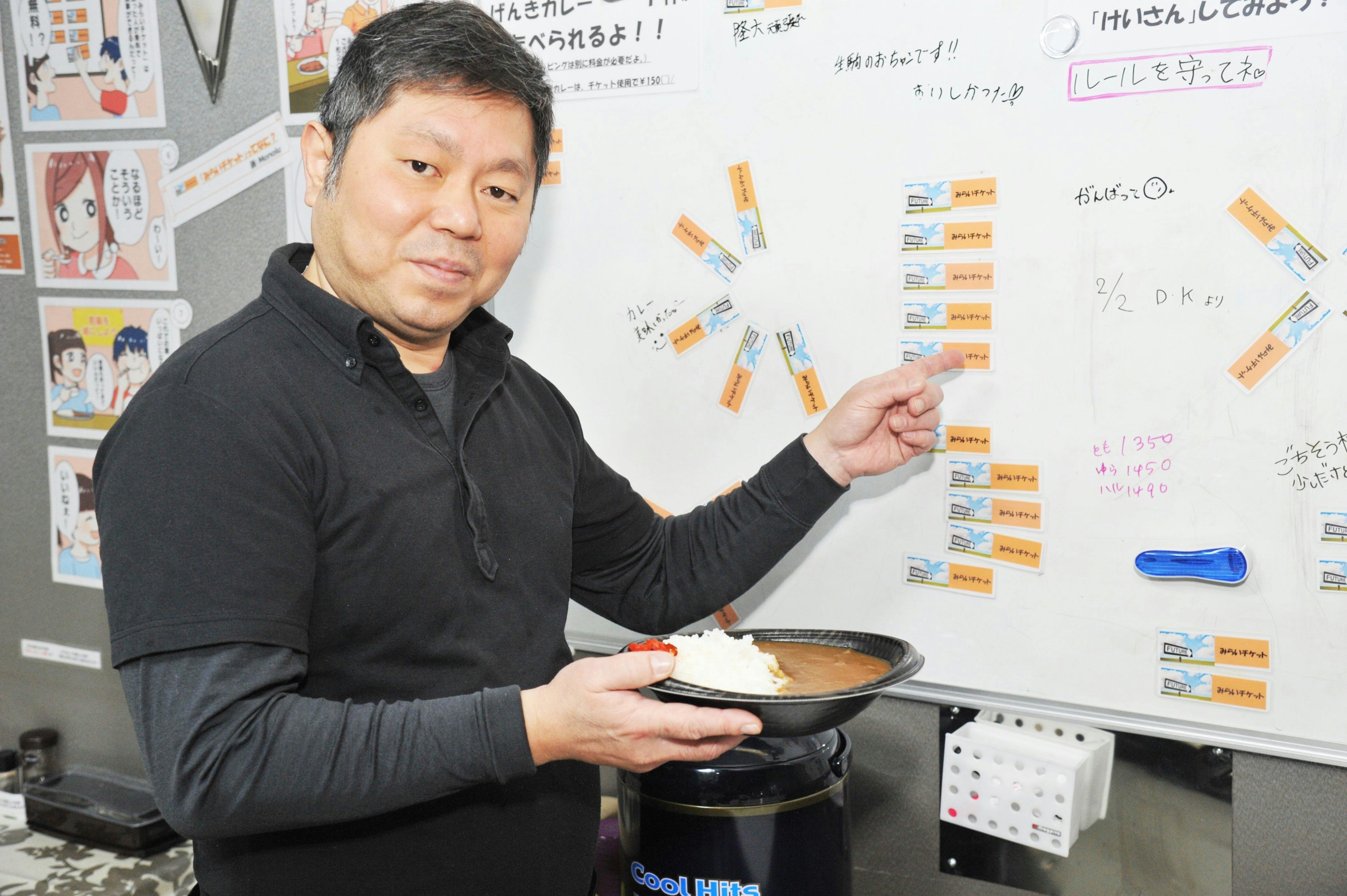 私はそのお客様にお礼を言い、チケットをホワイトボードに貼り出した直後に、子どもたちが来店し、実際に「げんきチケット」を使って、美味しそうにカレーを食べる子どもの姿を見たお客様は、「さっき寄付したチケット使ってもらえてる!めっちゃ嬉しい!良いことできた気がします!」と、笑顔でおっしゃってくださいました。