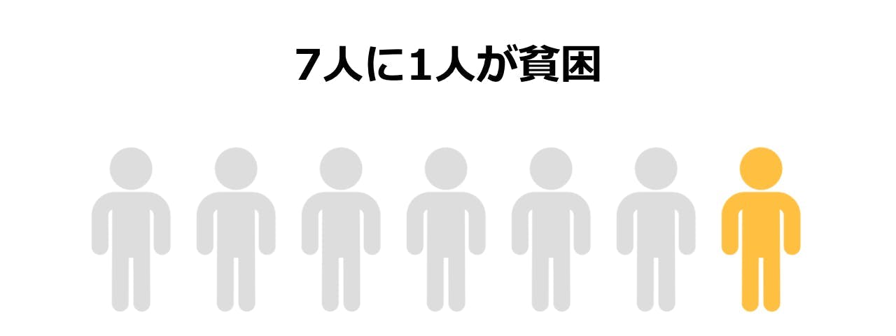 厚生労働省の報告書によると、日本の子ども(17歳以下)の貧困率は15.7%(2018年)です。つまり、7人に1人の子どもが貧困状態に陥っています。