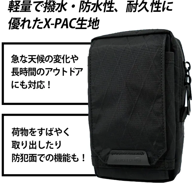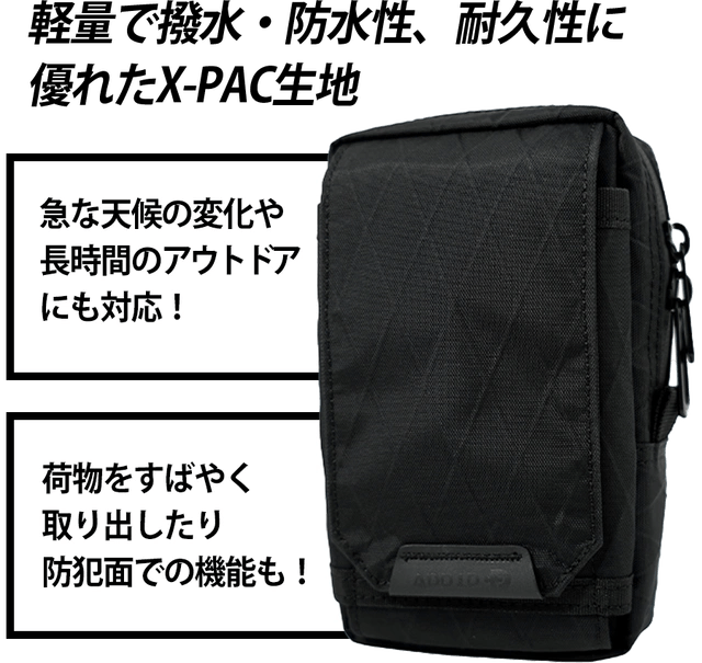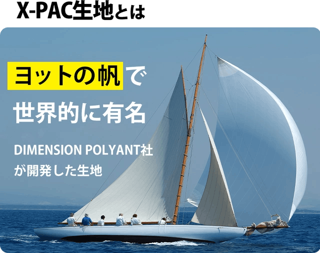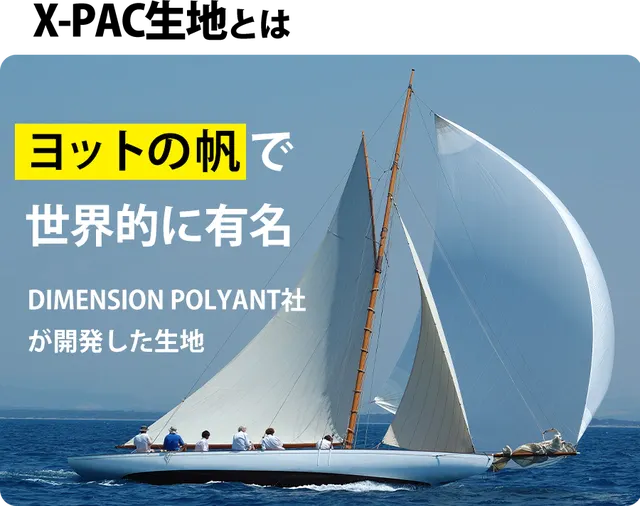 素材:防水性、耐久性、軽量の3つの利点を兼ね備えたX-PAC生地