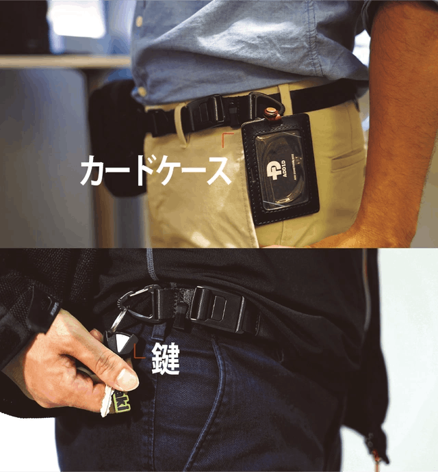 D2Dポーチに取り付けることで、ショルダーやウエストバッグのストラップとして使用できます。