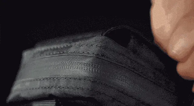 複数の層が熱圧着された三層構造のラミネート生地であり、ポリエステル、ナイロン、そしてポリエチレンの3つの素材から構成されています。さらに繊維が密集しているため耐摩耗性に優れています。