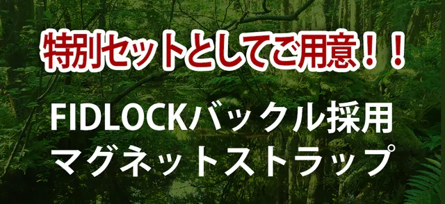 A、ストラップなどのマグネットには、FIDLOCKを採用しています。FIDLOCKは、ドイツのバックルメーカーが手がけるマグネット内蔵のバックルです。強力に装着でき、スムーズにはずせる特徴があります。