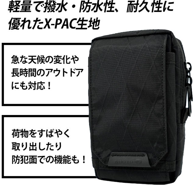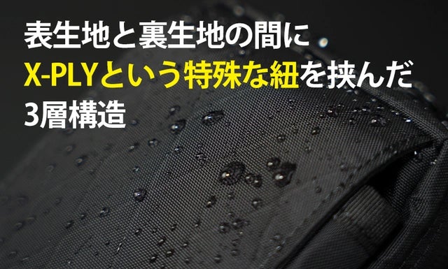素材:防水性、耐久性、軽量の3つの利点を兼ね備えたX-PAC生地
