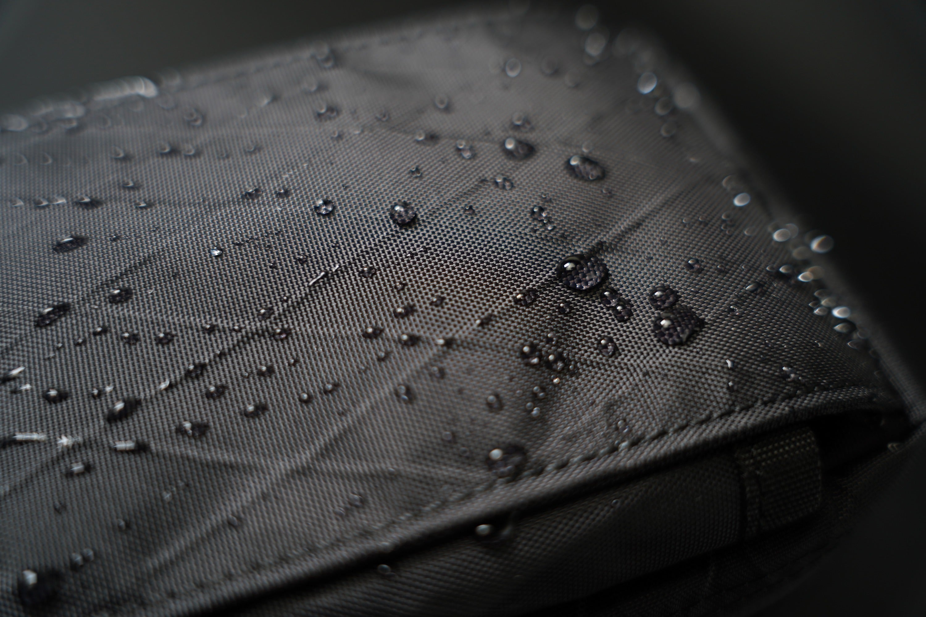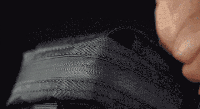 複数の層が熱圧着された三層構造のラミネート生地であり、ポリエステル、ナイロン、そしてポリエチレンの3つの素材から構成されています。さらに繊維が密集しているため耐摩耗性に優れています。