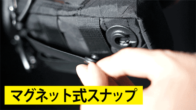 A、ストラップなどのマグネットには、FIDLOCKを採用しています。FIDLOCKは、ドイツのバックルメーカーが手がけるマグネット内蔵のバックルです。強力に装着でき、スムーズにはずせる特徴があります。